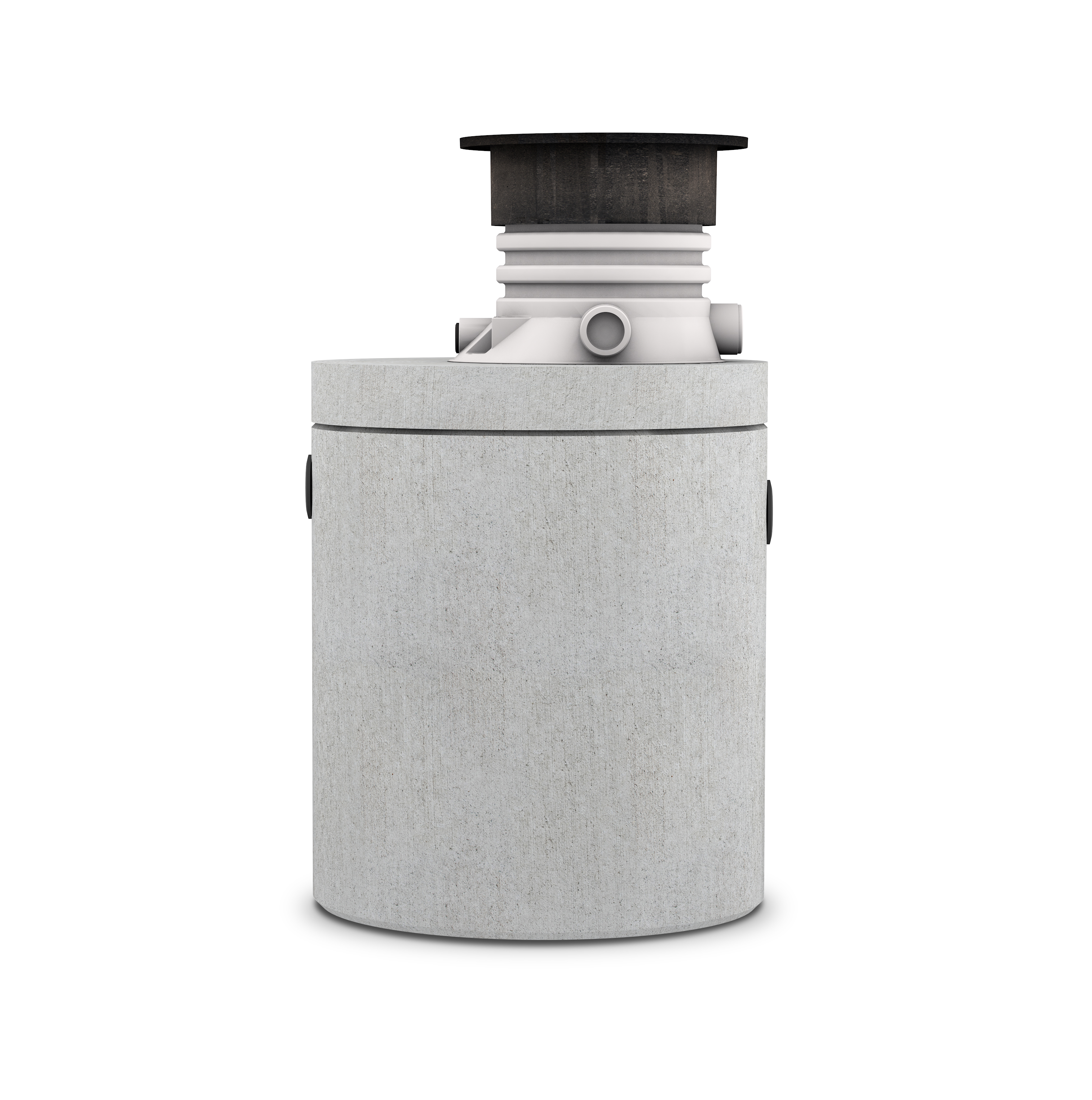 Sälvförankrande fettavskiljare i betong. Hals och betäckning ingår. A-mått: 1090-1360 mm.
