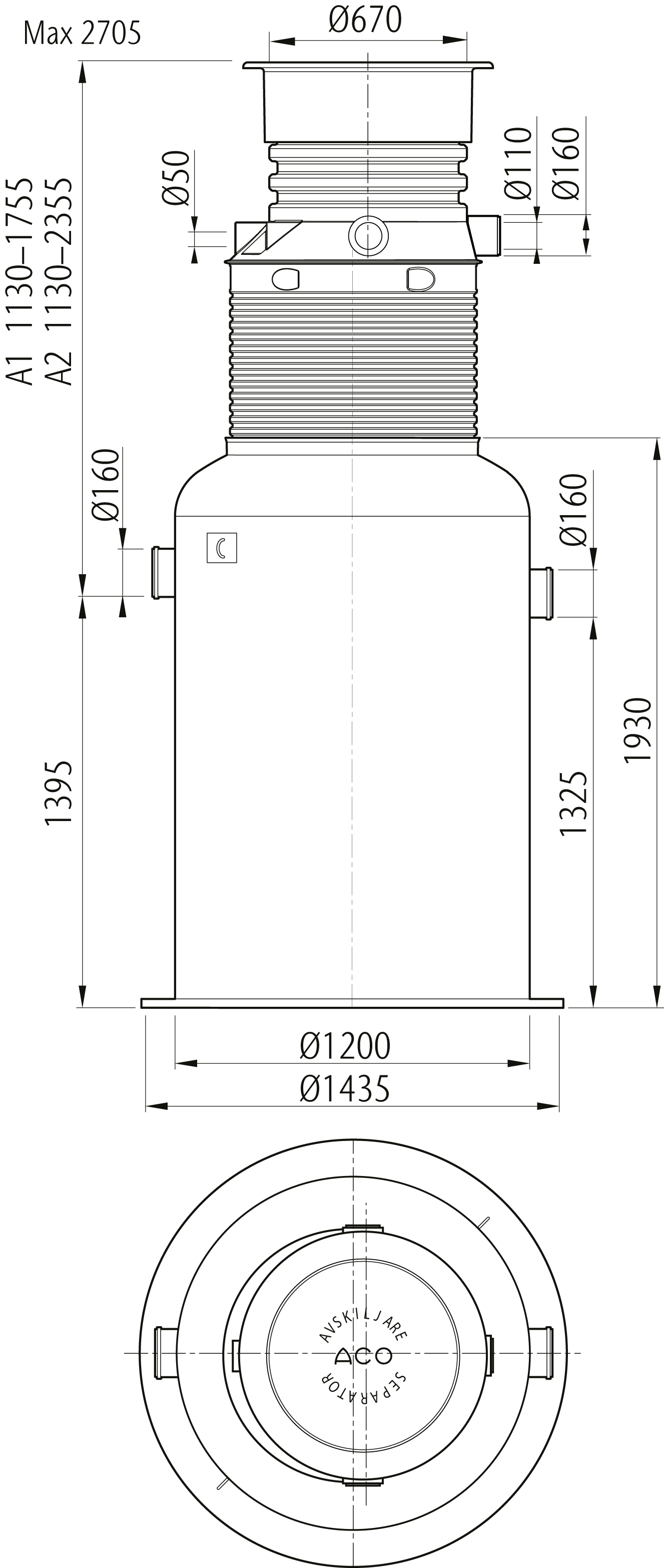 Lipumax G-B-serien är avsedd för behandling av fetthaltigt avloppsvatten från livsmedelsindustrier, storkök, restauranger, gatukök, bagerier m.fl. Avskiljarna är försedda med integrerat slamfång för slam och fasta partiklar. Alla modeller finns i två alternativa storlekar på slamfång beroende på behov i verksamheten. ACO Lipumax G-B är en självförankrande avskiljare försedd med ett läckagesäkert, gummiringstätat Ø 600/800 mm halssystem som lätt kan justeras i höjdled. Integrerat i halsen finns ett kabelrörsurtag Ø 50 mm som i kombination ACO Protight (tillval) ger snabb, läckage- och gasåterströmningssäker montering av larmgivare. A1-mått 1130-1755 mm
