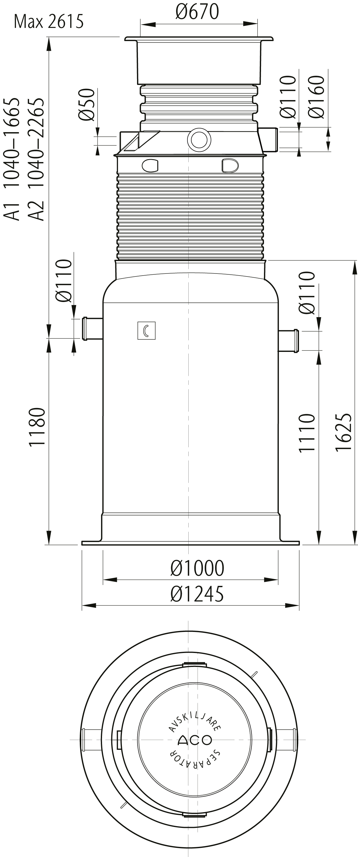 Lipumax G-B-serien är avsedd för behandling av fetthaltigt avloppsvatten från livsmedelsindustrier, storkök, restauranger, gatukök, bagerier m.fl. Avskiljarna är försedda med integrerat slamfång för slam och fasta partiklar. Alla modeller finns i två alternativa storlekar på slamfång beroende på behov i verksamheten. ACO Lipumax G-B är en självförankrande avskiljare försedd med ett läckagesäkert, gummiringstätat Ø 600/800 mm halssystem som lätt kan justeras i höjdled. Integrerat i halsen finns ett kabelrörsurtag Ø 50 mm som i kombination ACO Protight (tillval) ger snabb, läckage- och gasåterströmningssäker montering av larmgivare. A2-mått 1040-2265 mm