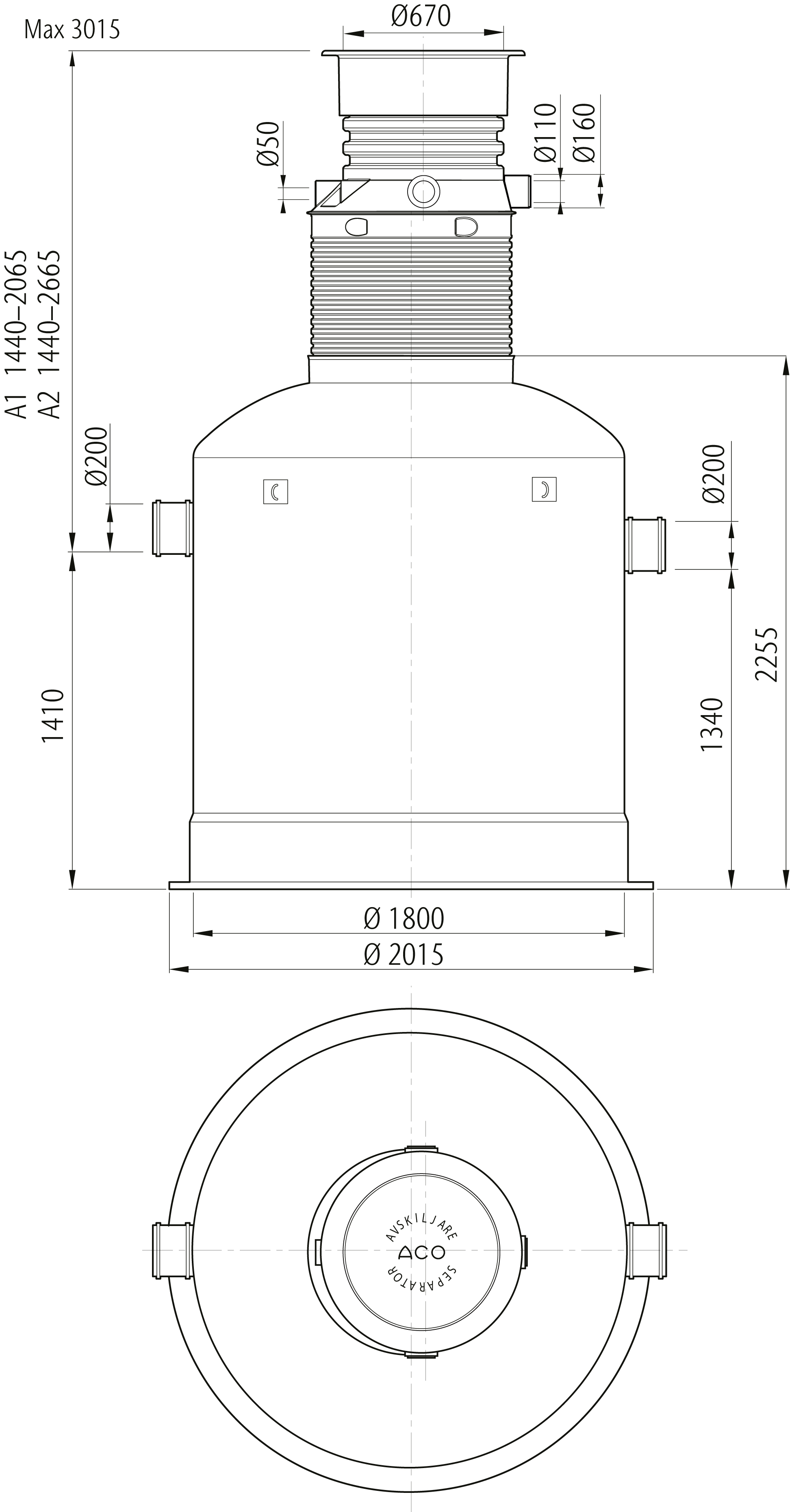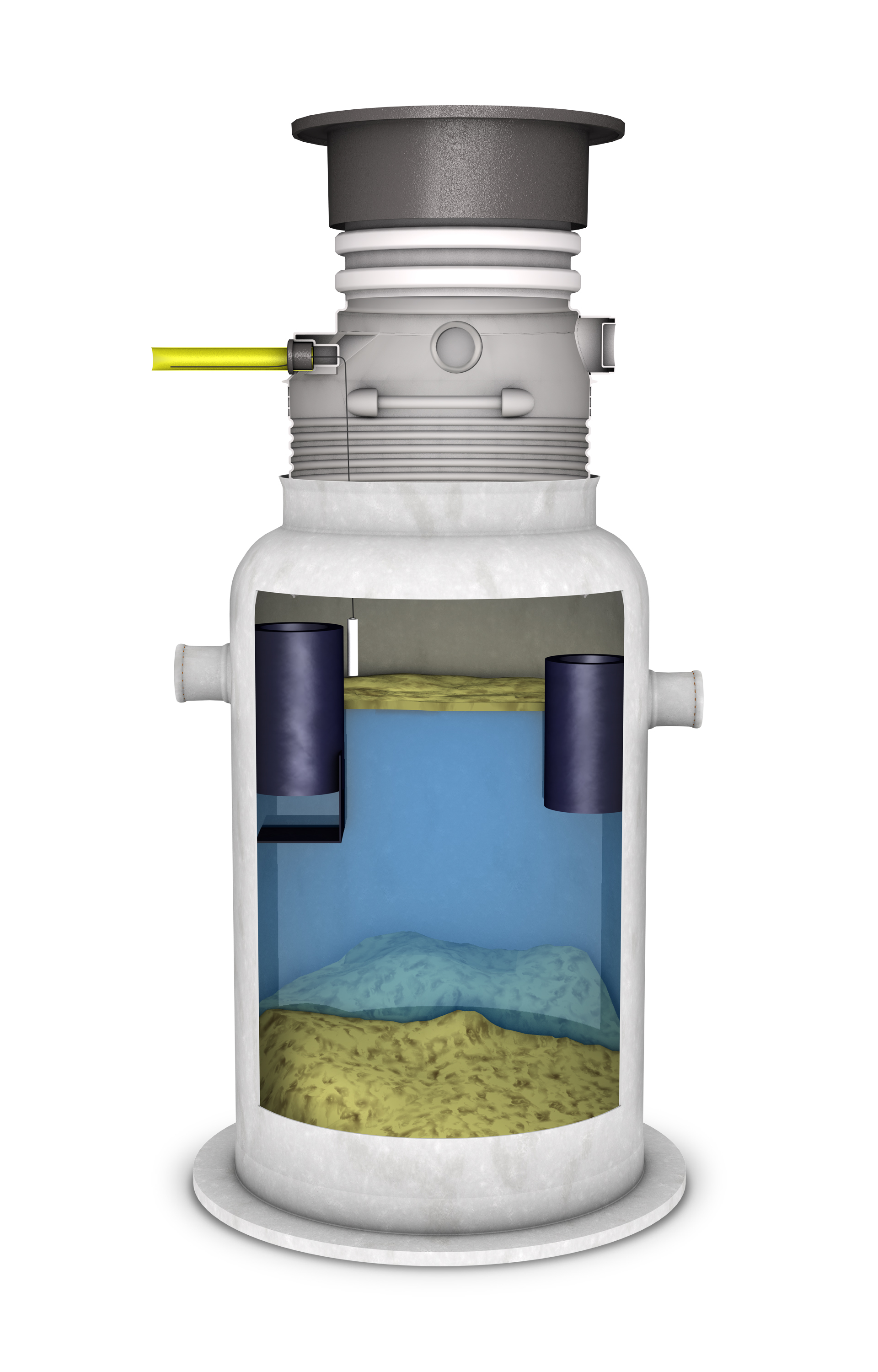 Lipumax G-B-serien är avsedd för behandling av fetthaltigt avloppsvatten från livsmedelsindustrier, storkök, restauranger, gatukök, bagerier m.fl. Avskiljarna är försedda med integrerat slamfång för slam och fasta partiklar. Alla modeller finns i två alternativa storlekar på slamfång beroende på behov i verksamheten. ACO Lipumax G-B är en självförankrande avskiljare försedd med ett läckagesäkert, gummiringstätat Ø 600/800 mm halssystem som lätt kan justeras i höjdled. Integrerat i halsen finns ett kabelrörsurtag Ø 50 mm som i kombination ACO Protight (tillval) ger snabb, läckage- och gasåterströmningssäker montering av larmgivare. A1-mått 1440-2065 mm