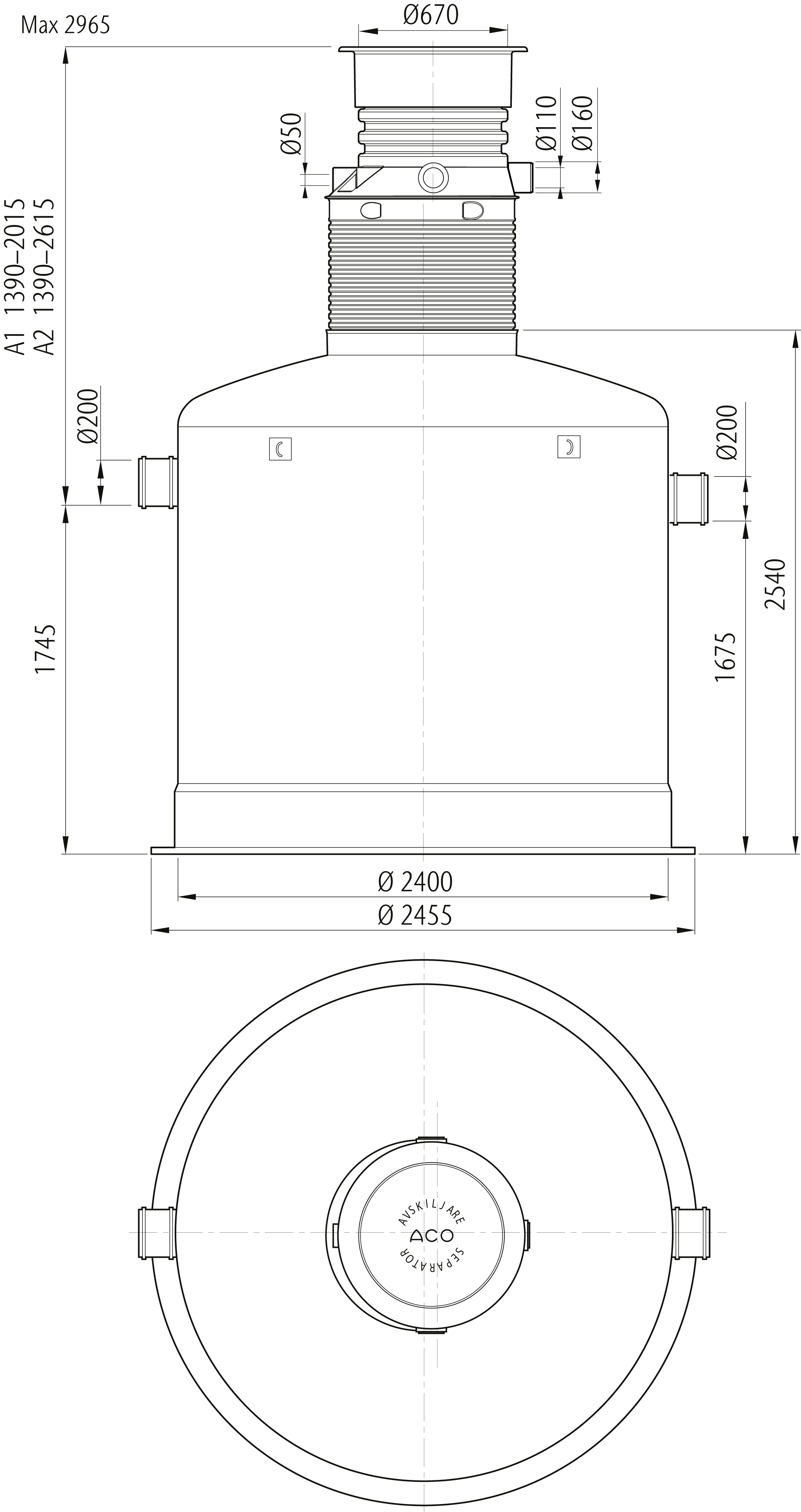 Lipumax G-B-serien är avsedd för behandling av fetthaltigt avloppsvatten från livsmedelsindustrier, storkök, restauranger, gatukök, bagerier m.fl. Avskiljarna är försedda med integrerat slamfång för slam och fasta partiklar. Alla modeller finns i två alternativa storlekar på slamfång beroende på behov i verksamheten. ACO Lipumax G-B är en självförankrande avskiljare försedd med ett läckagesäkert, gummiringstätat Ø 600/800 mm halssystem som lätt kan justeras i höjdled. Integrerat i halsen finns ett kabelrörsurtag Ø 50 mm som i kombination ACO Protight (tillval) ger snabb, läckage- och gasåterströmningssäker montering av larmgivare. A1-mått 1390-2015 mm