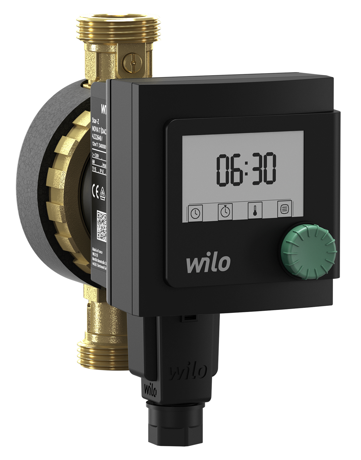 Våt VVC-pump med permanentmagnetmotor. Levereras med armatursats samt timerfunktion. Anslutningsspänning 1x230 V, 50 Hz.