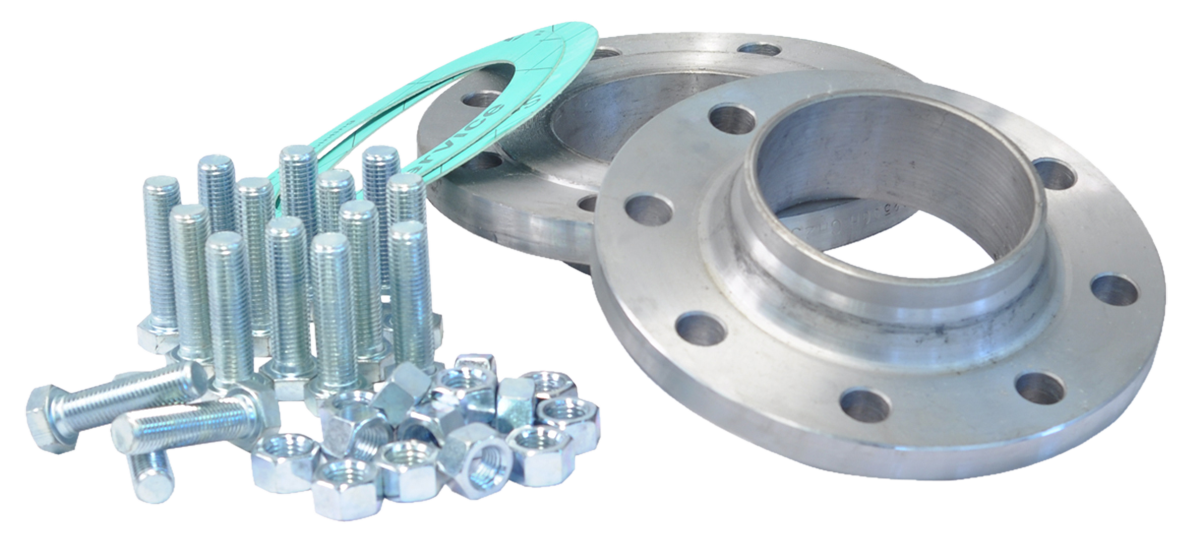 Motflänsar levereras komplett med 2 flänsar, bultar och mutter samt packningar.