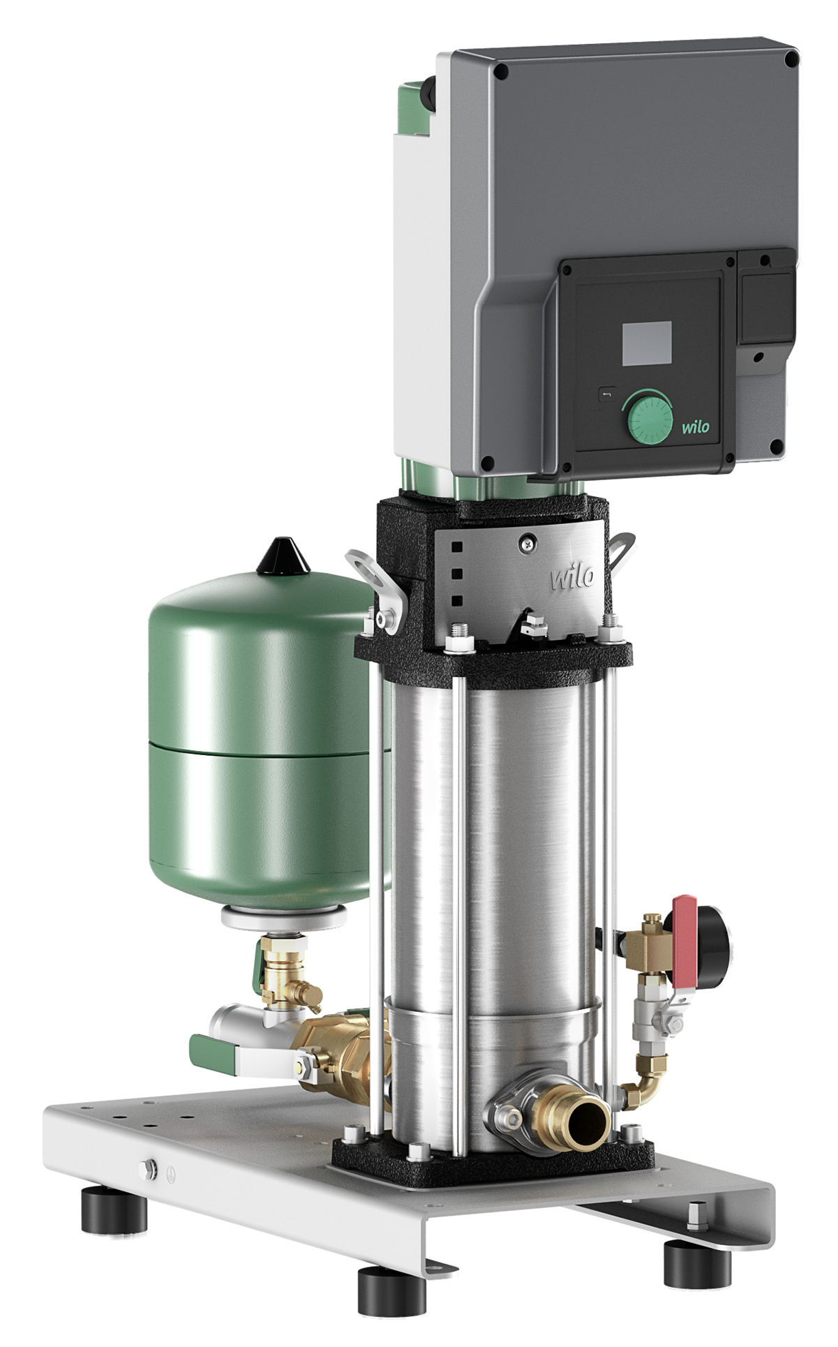 Anslutningsklar tryckstegringsanläggning med 1 pump av typ Helix2.0-VE. Komplett med rörgarnityr och automatik för automatisk drift.