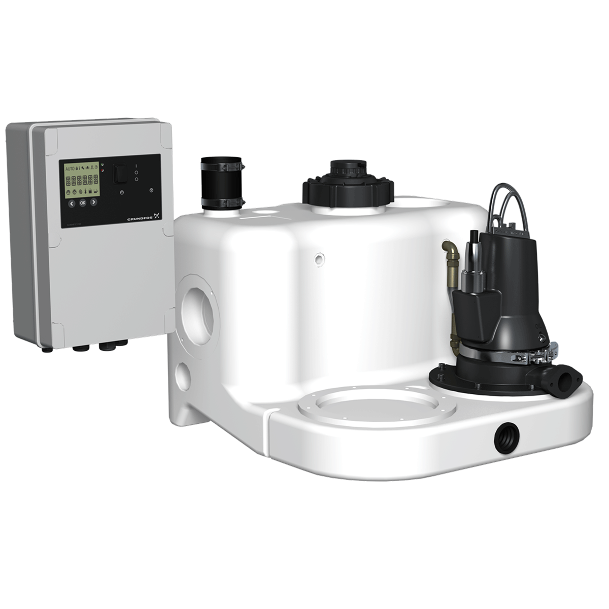 Komplett pumpstation för inomhusbruk med skärande pump och styrskåp