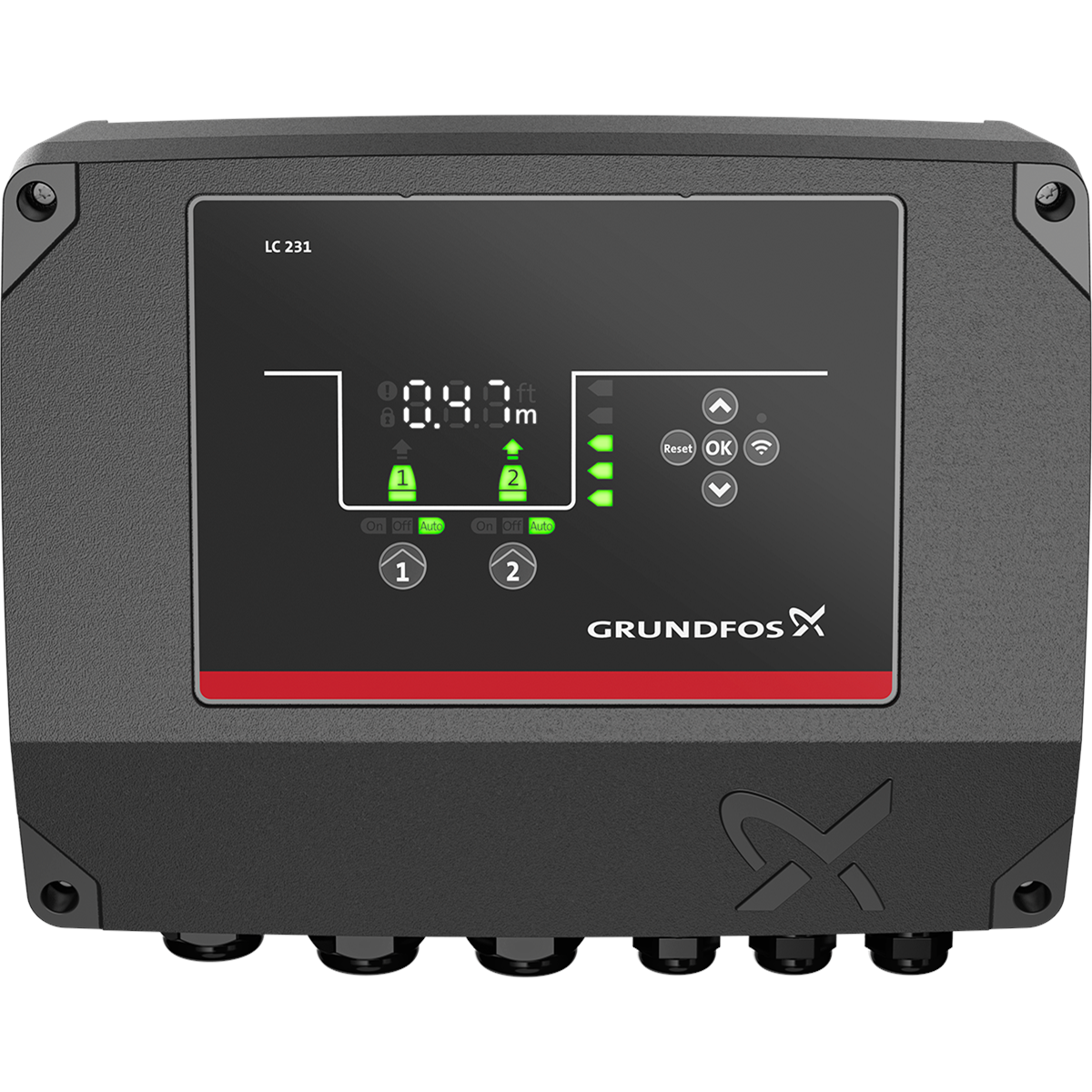 Automatikskåp för tömnings- eller påfyllningsapplikationer. Direktanslutning med Grundfos GO via Bluetooth. Fungerar med både nivåvippor och analog tryckgivare. Inbyggd summer för lokalt ljudlarm och larmutgång för vidarekoppling av larm. Skåpet har inbyggt elektroniskt motorskydd och är avsett för inomhusmontage.