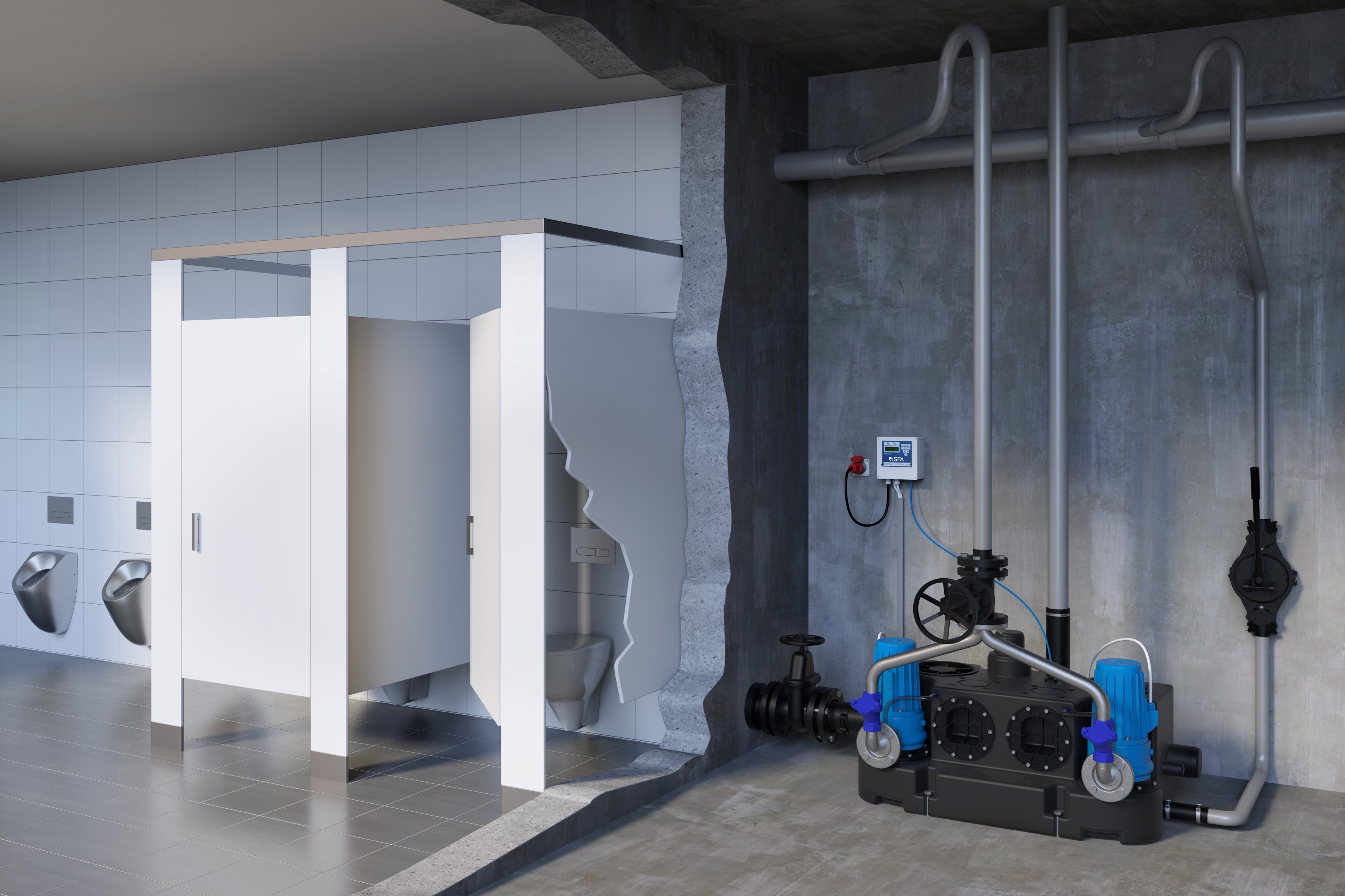 Pumpstation med dubbla grinders/pumpar/motorer för avloppsvatten 71.1 D