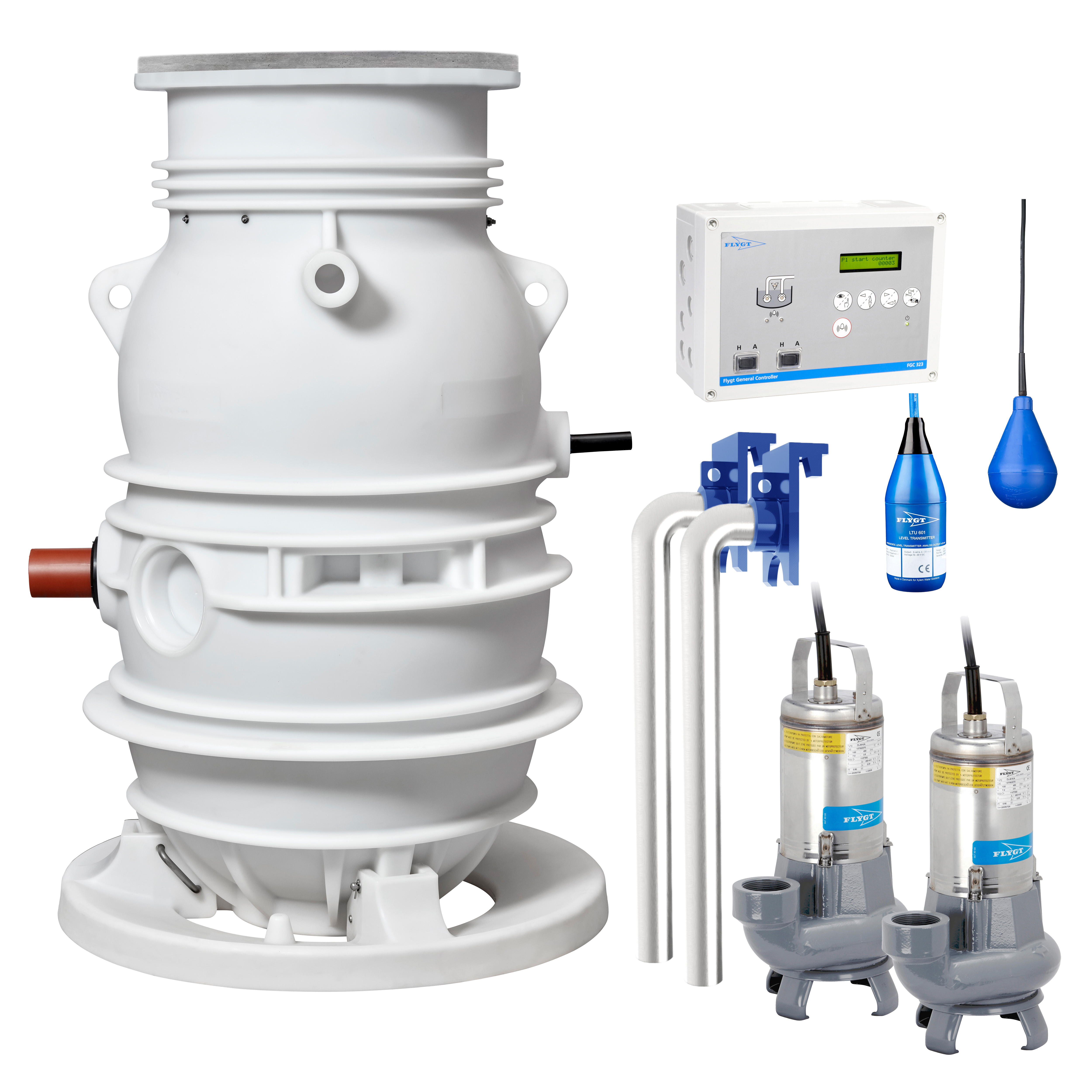 Flygt Compit 901 villapumpstation, installationsfärdig prefabricerad pumpstation för två pumpar avsedd för grund- och dagvatten.