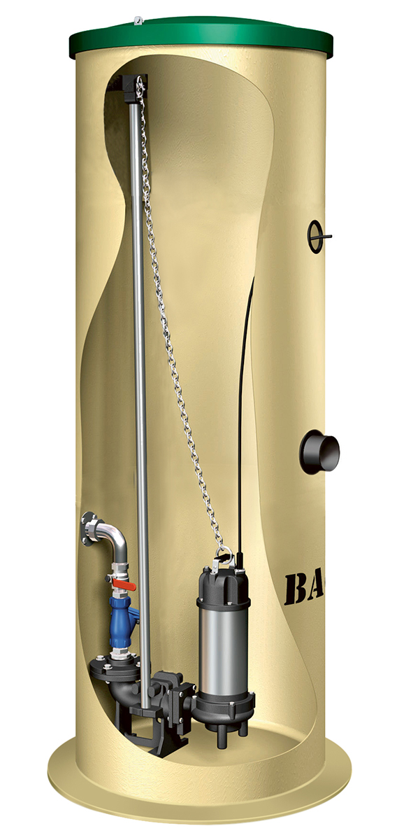 Pumpstation med skärande GD-20A 3-fas pump med vippa för start/stopp, Ø 600 mm, med högnivålarm BLS.