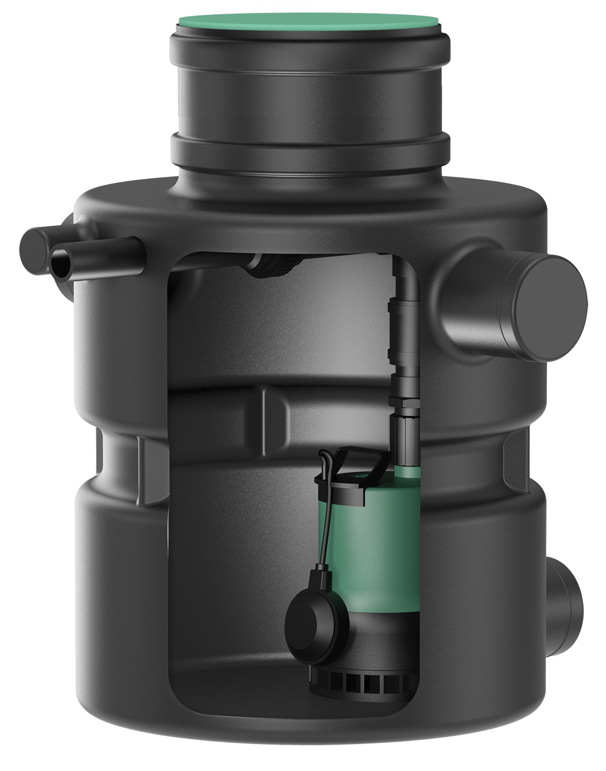 Anslutningsklar pumpstation för installation på markplan eller golv. Komplett med pump TMW 32/8.
