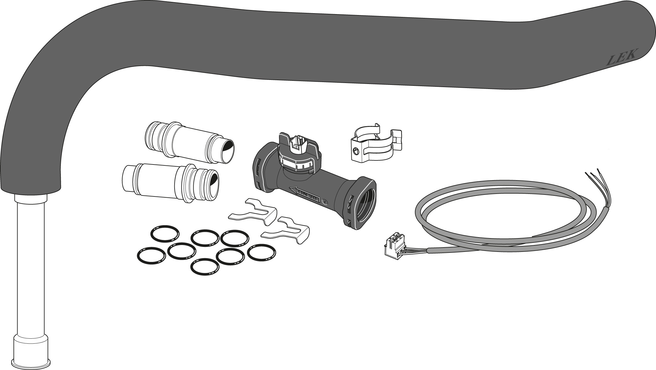 Flödesmätarkit bestående av flödesmätare, rörkoppling och kablage. Används tillsammans med NIBE VVM310.