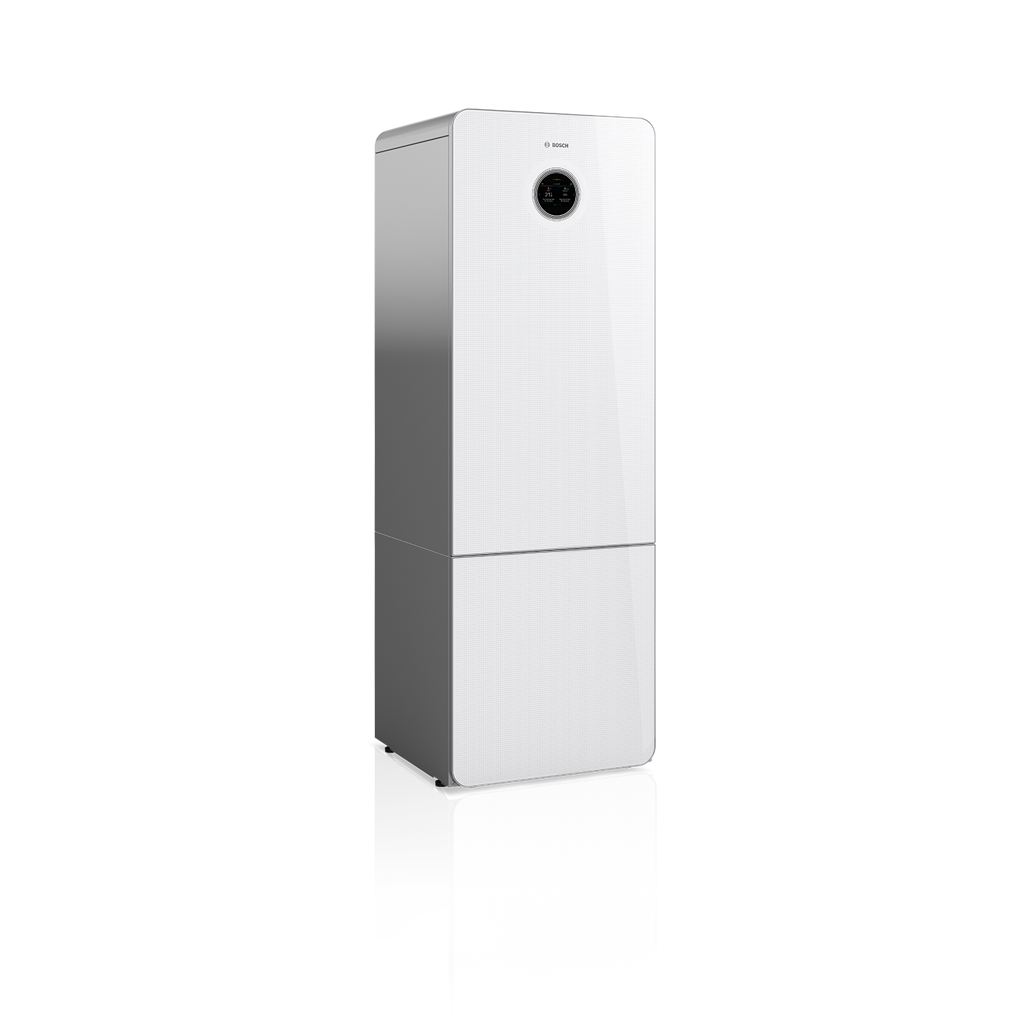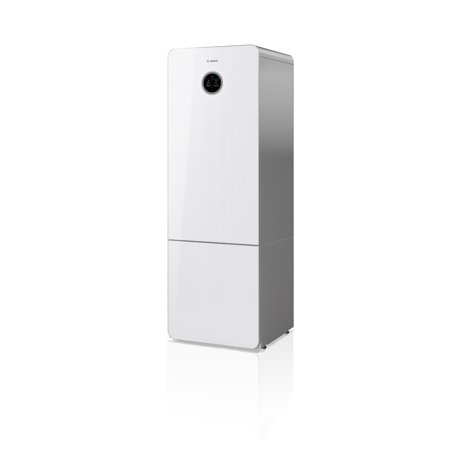 Bosch Compress 7800i LW 8 M är en vätska/vatten värmepump med snygg glas front för energikällorna mark, berg, sjö eller grundvatten. Bosch Compress 7800i LW 8 M innehåller en användarvänlig reglercentral med stor och tydlig touch färgskärm och med möjlig uppkoppling mot smartphone. Bosch Compress 7800i LW 8 M producerar värme och varmvatten via den integrerade varmvattenberedaren med en slät rostfri laddslinga och har även integrerat tillskott på upp till 9kW. Bosch Compress 7800i LW 8 M har inverterstyrd kompressor som arbetar mellan 2 - 8 kW beroende på behov och driftfall. De integrerade cirkulationspumparna på varma och kalla sidan styrs helt automatiskt efter behov.