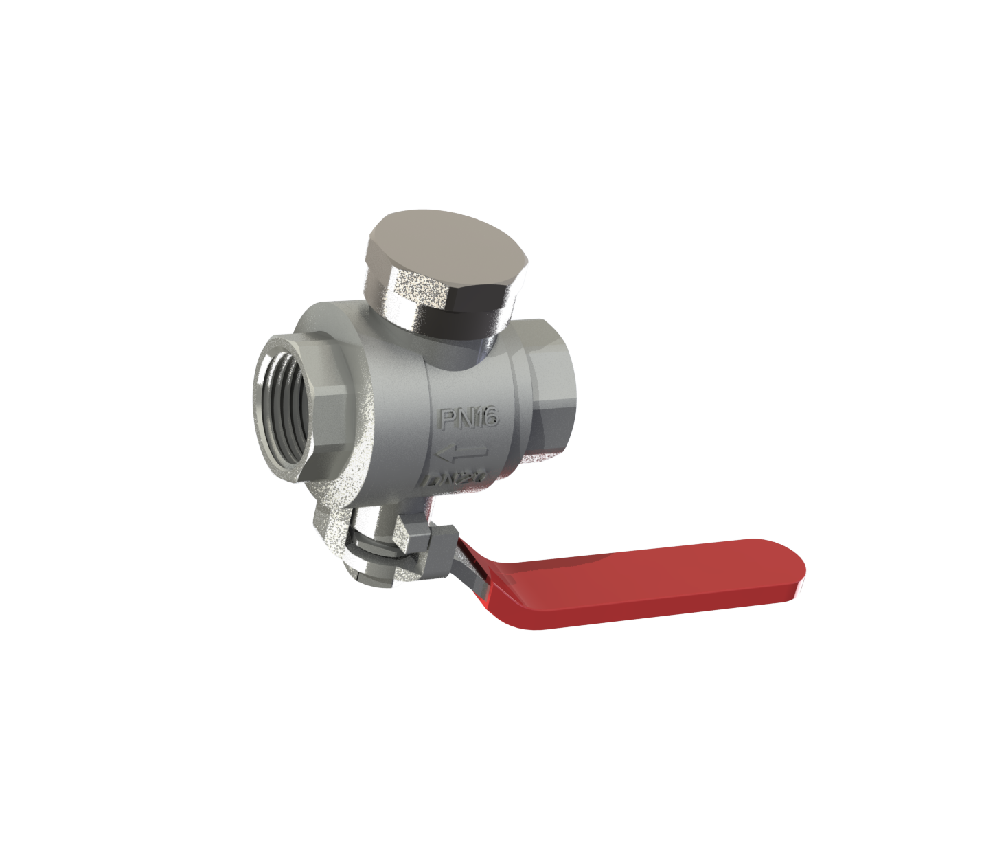 Kulventil med handtag och smutsfilter (0,6 mm) för värme/kylsystem. Invändig gänga.