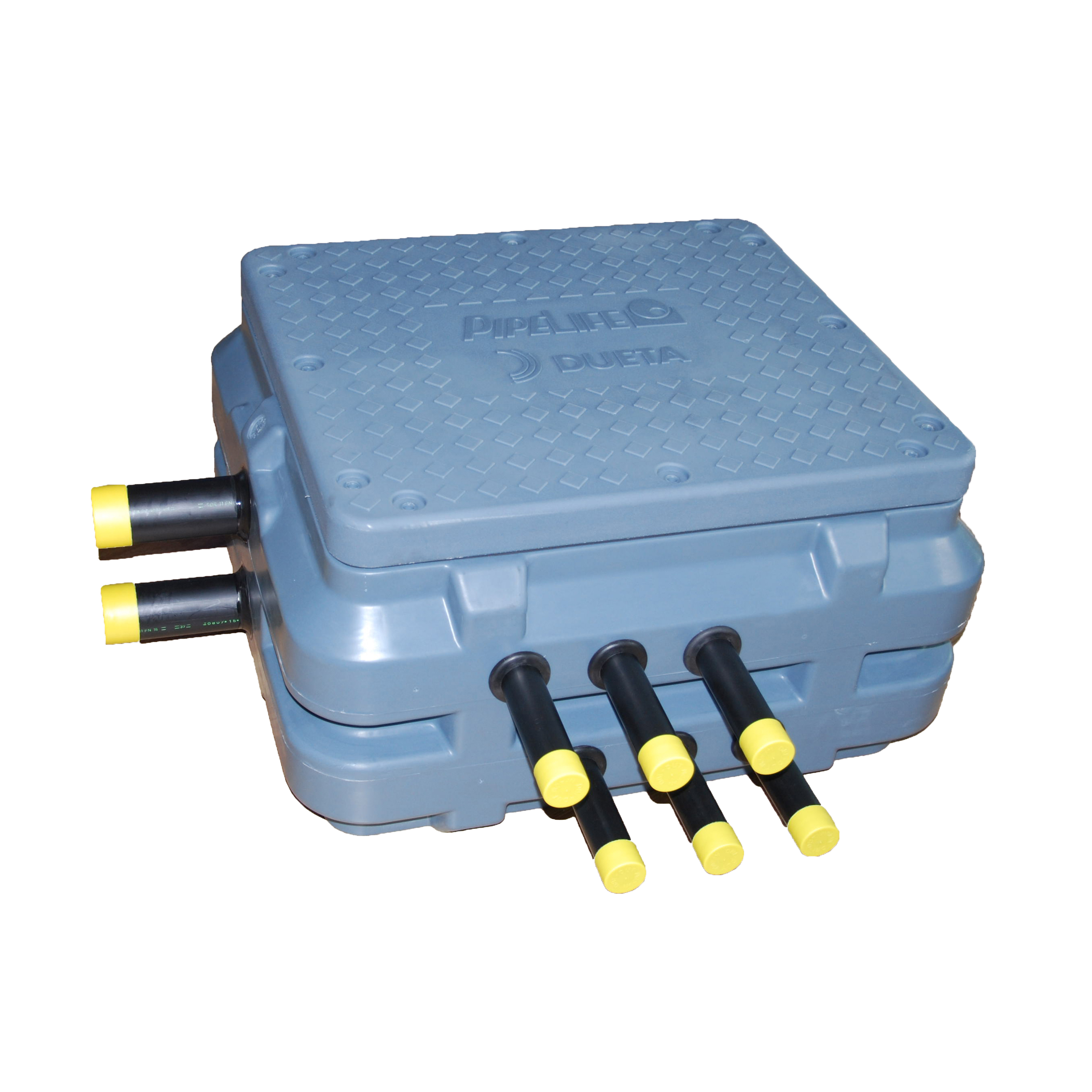RauHeat Dueta kollektorbrunn för geoenergi med 2-8 kretsar. Levereras med injusteringsventil och flödesmätare. Kompakt utförande, kan installeras i små utrymmen.