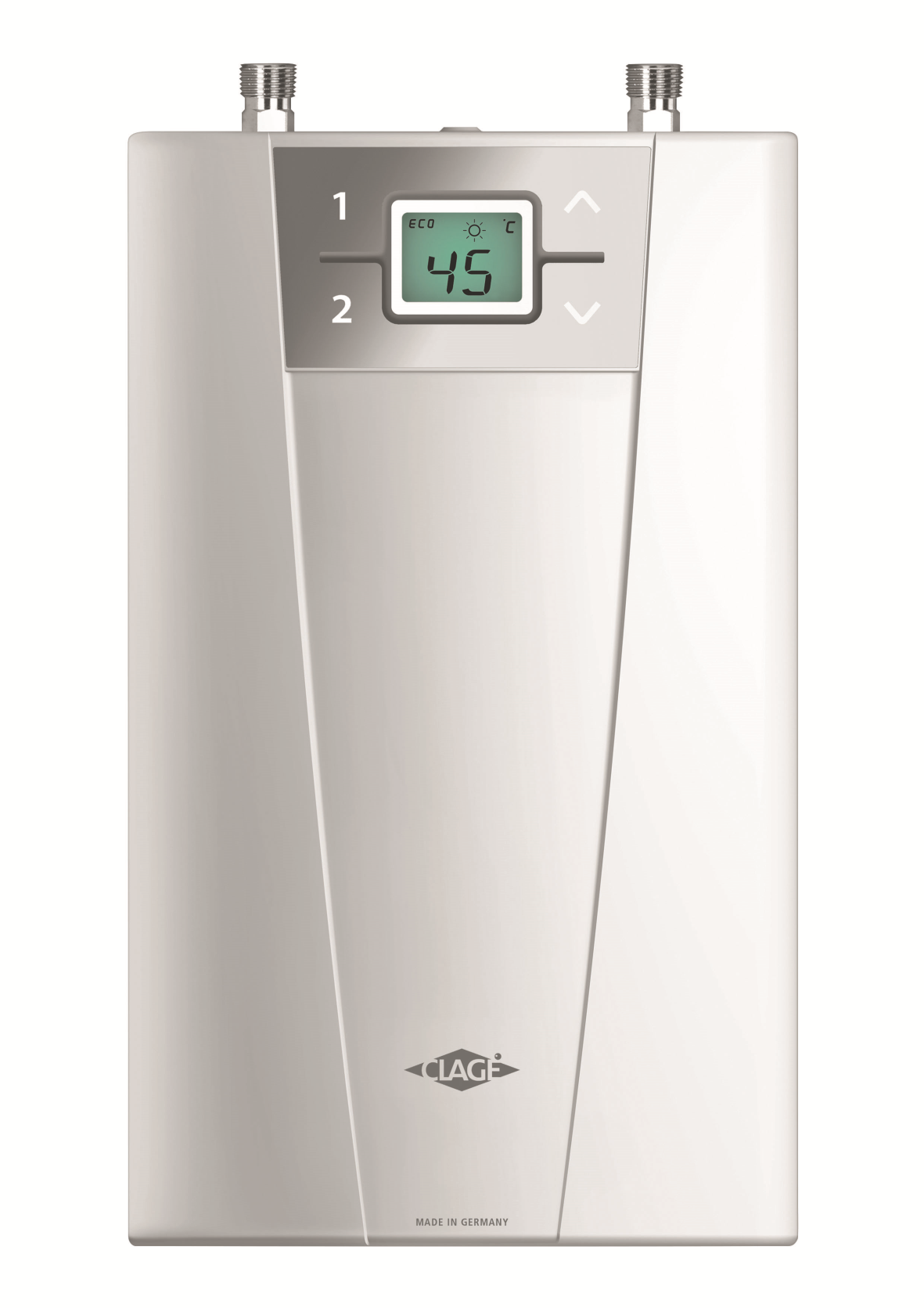 Elektroniskt styrd genomströmningsvärmare på 11 eller 13,5kW (väljes vid installation) För ett eller flera tappställen. Kan monteras mot befintliga blandare.