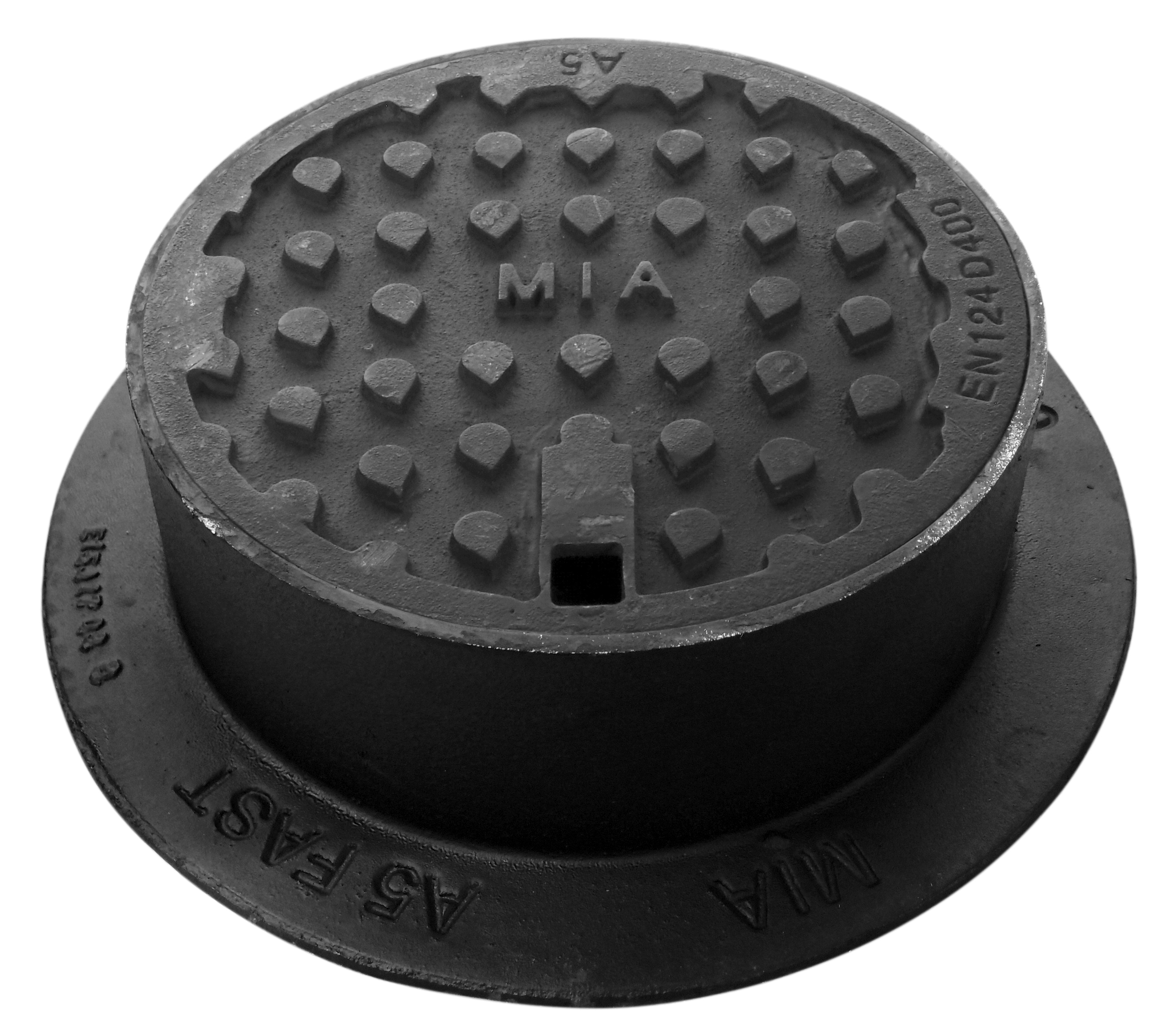 A5 Fast betäckning i segjärn, lock med låsarmar, slit/dämpring och tätt spetthål.