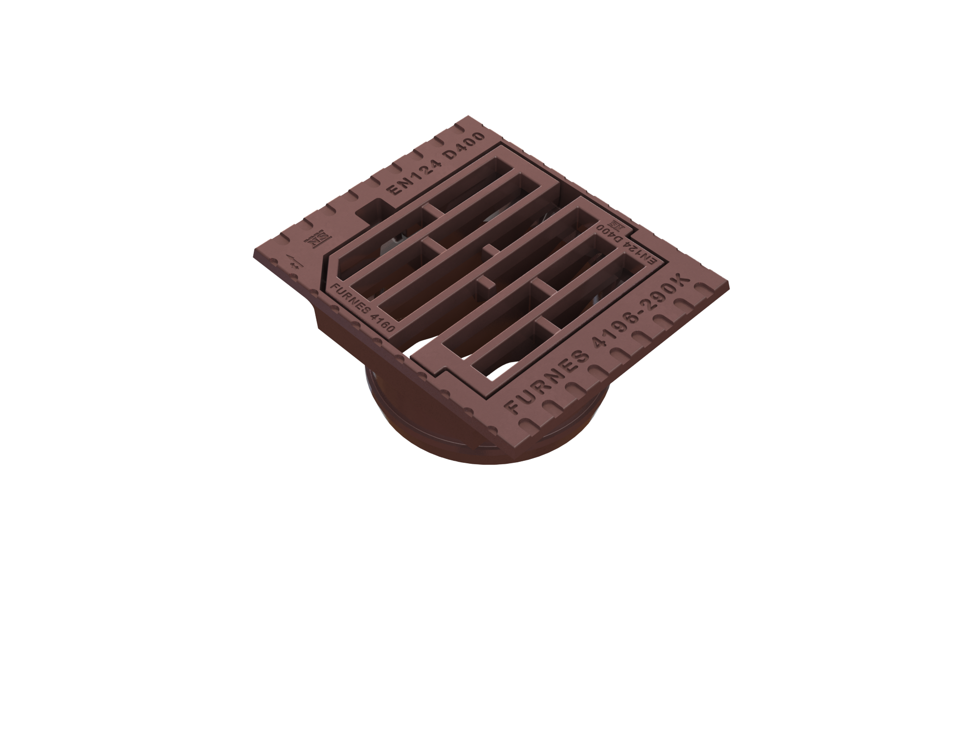 315 flytande rännstensbetäckning till Wavin Ø315 teleskoprör, REGULAR galler med gångjärn, slit-/dämpklossar, lås och spetthål. Genomströmningsarea 455cm2