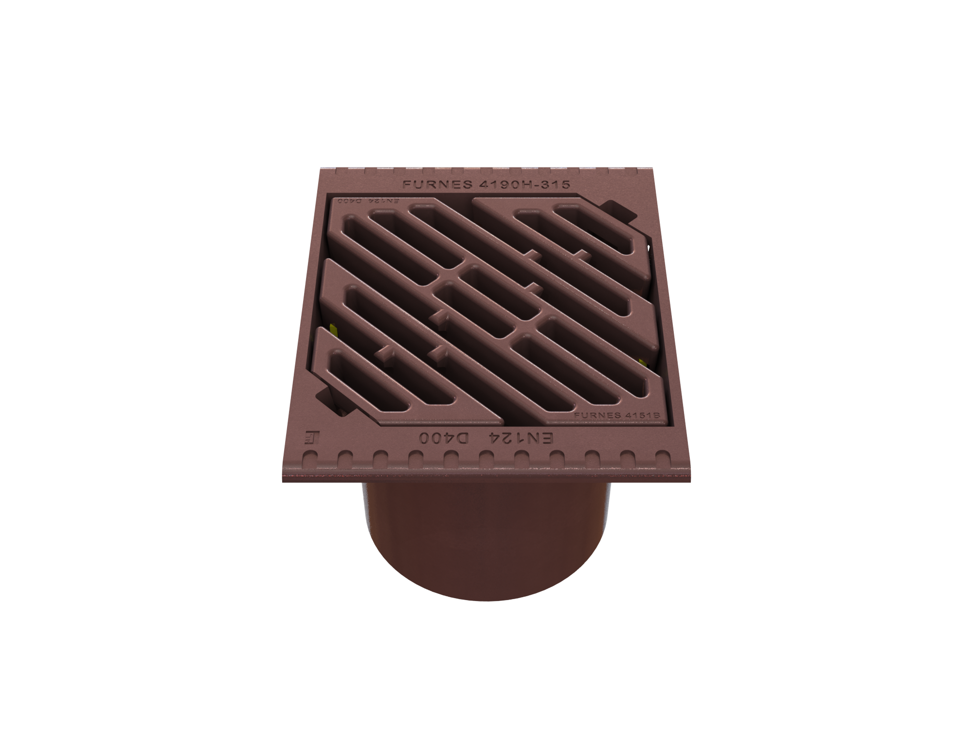315 flytande rännstensbetäckning, hög, REGULAR galler, slit-/dämpklossar och lås. Genomströmningsarea 650cm2