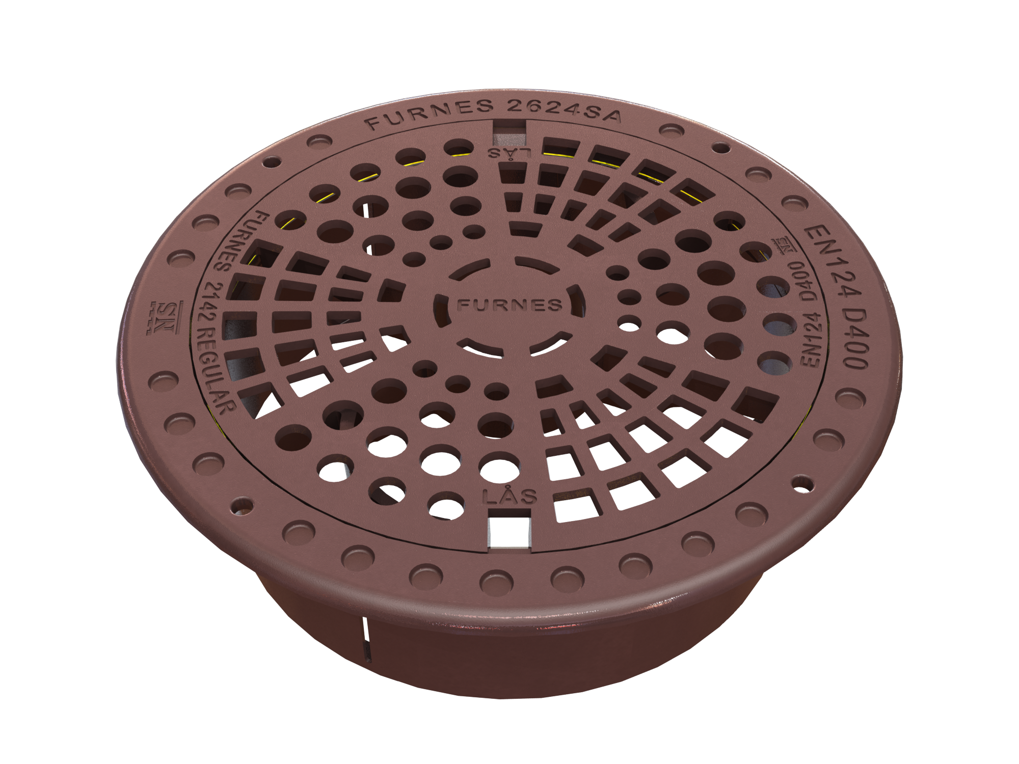 640 flytande ram hög, spalt, hållare för mellanlock, REGULAR galler, slit-/dämpring, lås och spetthål