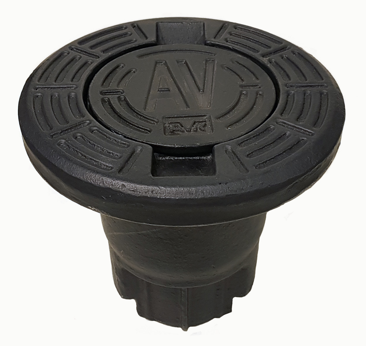 AVK betäckning med rund fläns och runt lock märk AV