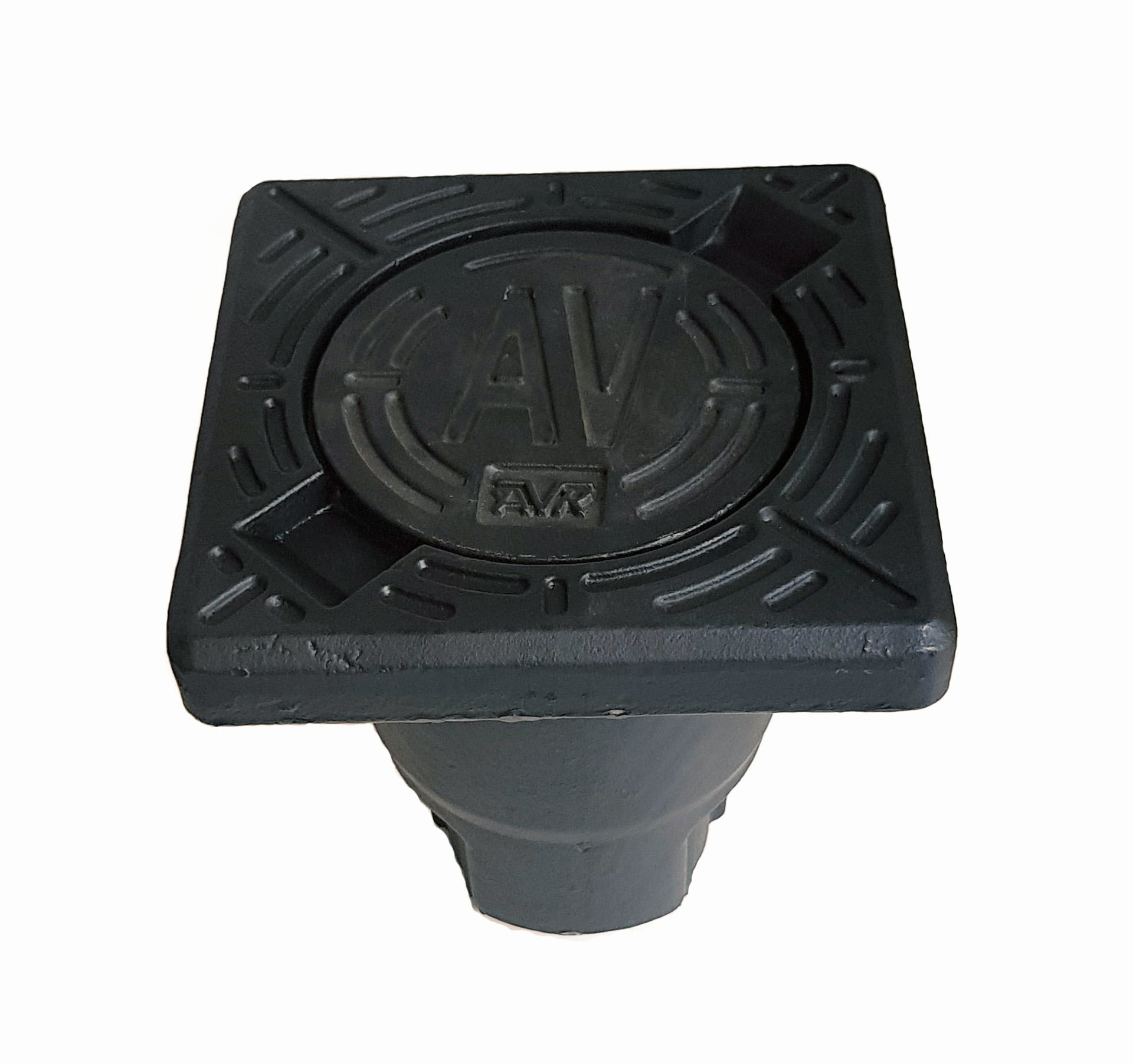 AVK betäckning med fyrkantig fläns och runt lock märk AV