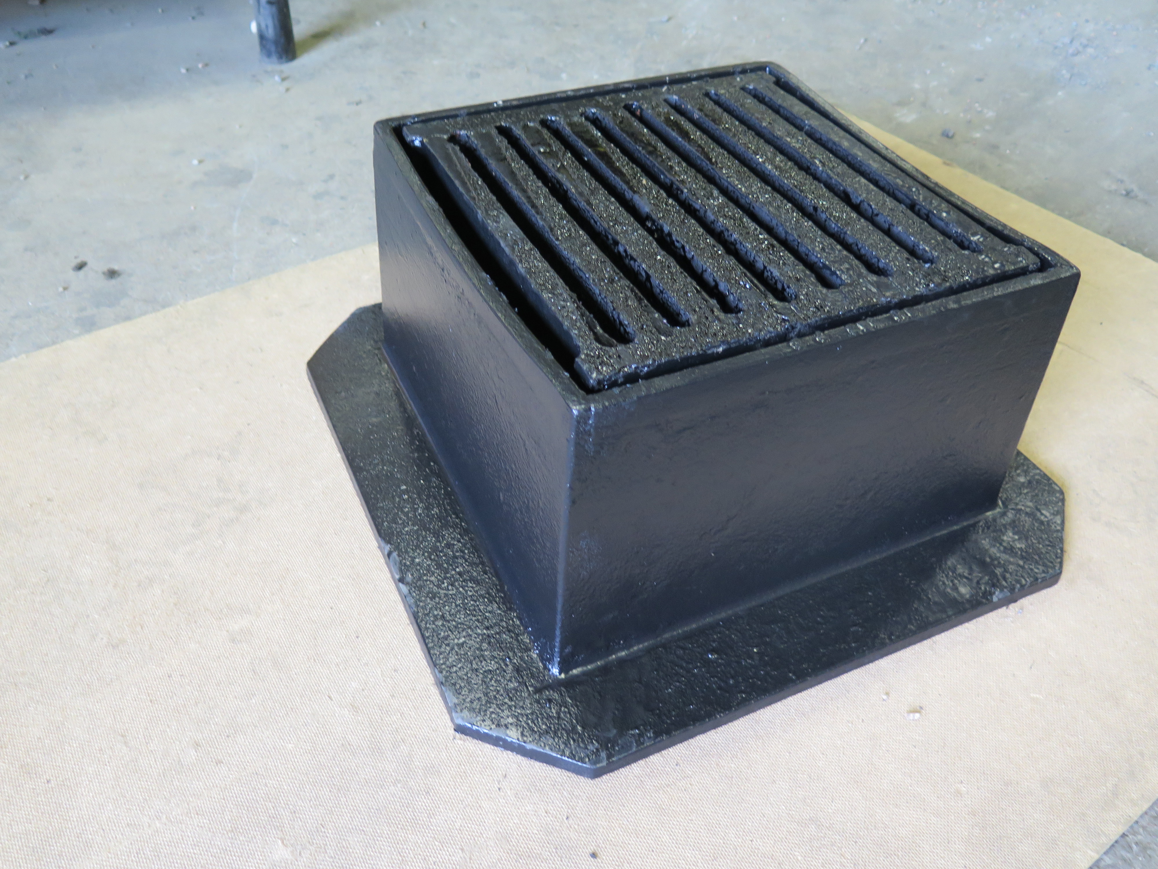 Komplett betäckning passande markplatta 350x350mm, avsedd för användning i ränndal. Rakt galler och skålad ram för anpassning mot ränndal.