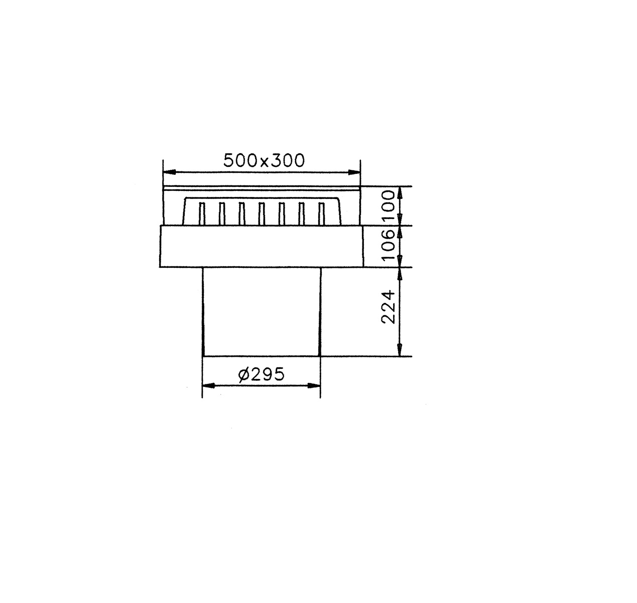 Teleskopisk fyrkantig kantstensbetäckning. För betongrör 150 eller plaströr 160. Segjärn