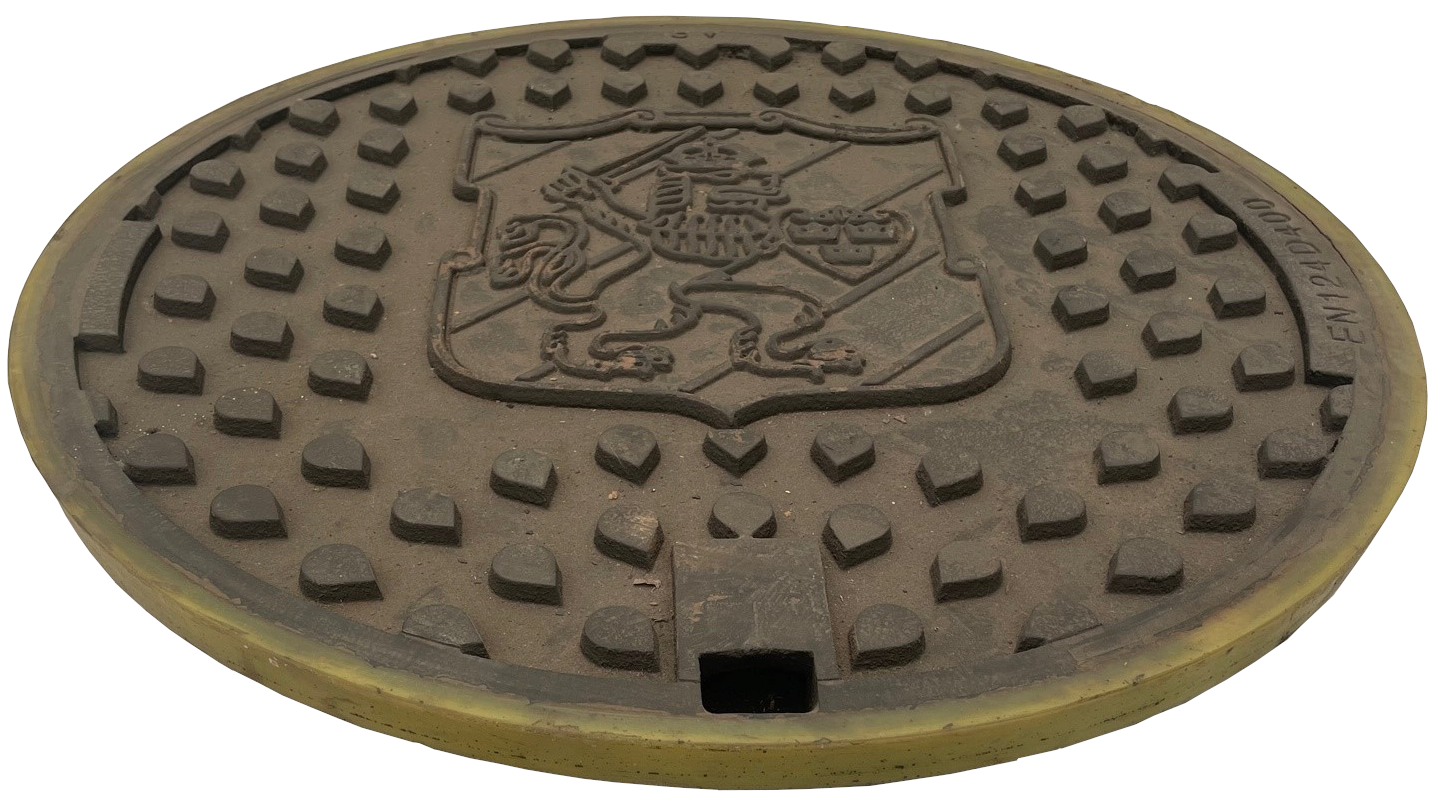 Lock med pågjuten polyuretanpackning, Låsarmar. Göteborgs stadsvapen