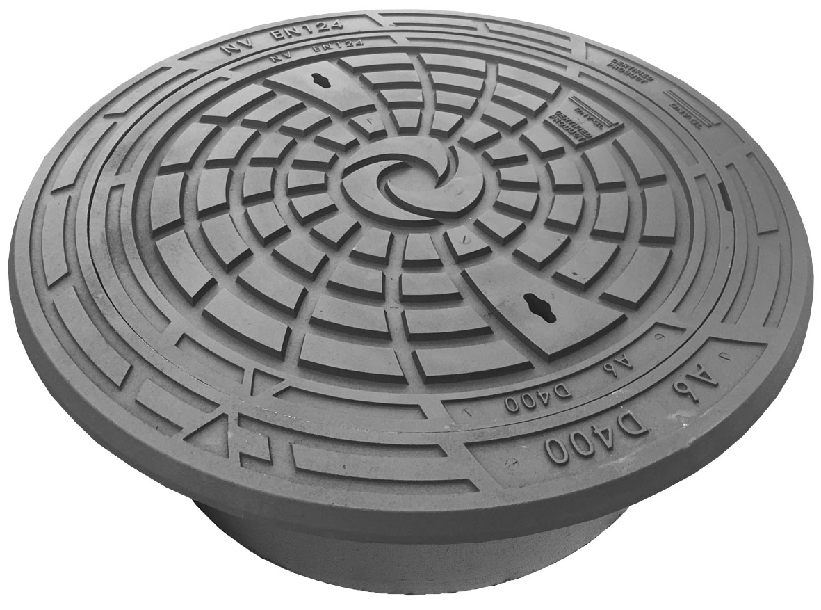 Rund betäckning med lock för nedstigningsbrunn med dagöppning 600, infälld PUR-packning, gråjärn