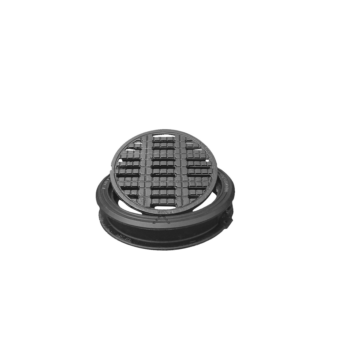 Rund betäckning med galler för dagvattenbrunn med dagöppning 640/600, gråjärn