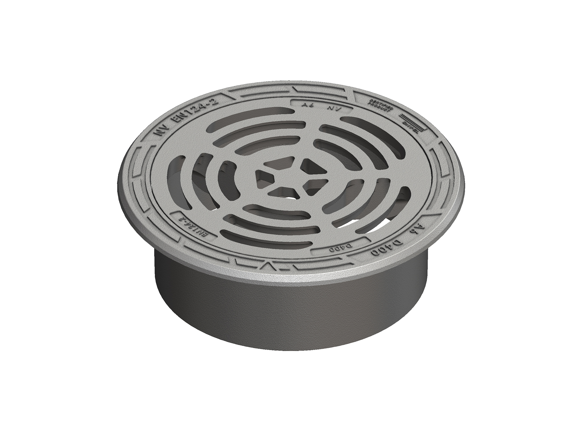 Rund betäckning med galler för nedstigningsbrunn med dagöppning 640, gråjärn