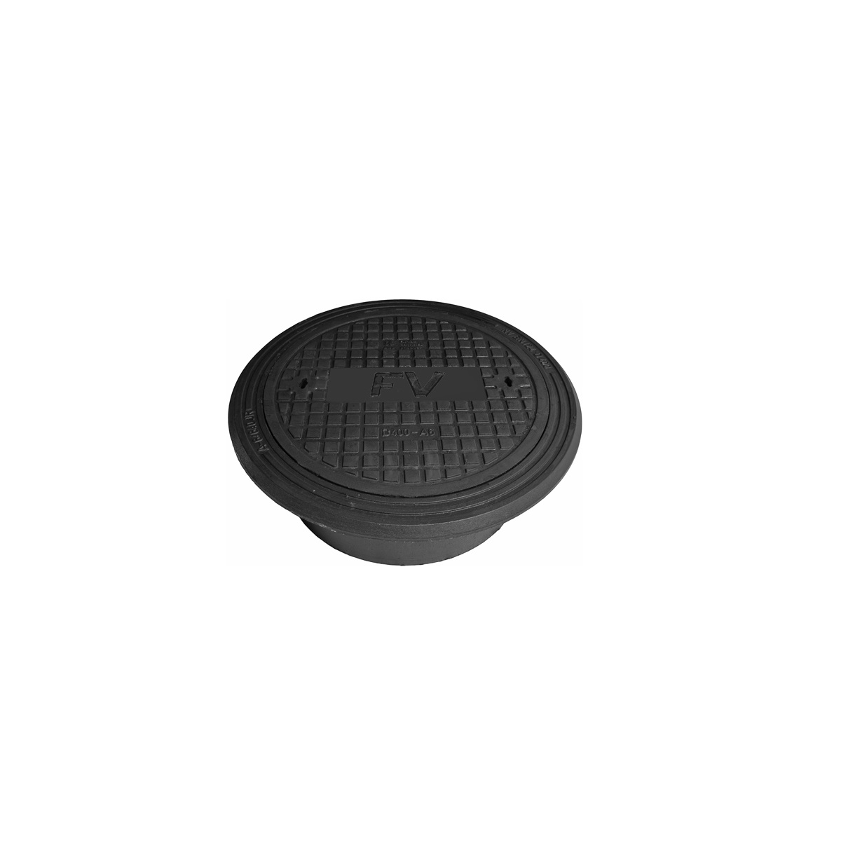 Rund betäckning med lock för nedstigningsbrunn med dagöppning 640, täta nyckelhål, infälld PUR-packning, märkt FV, gråjärn