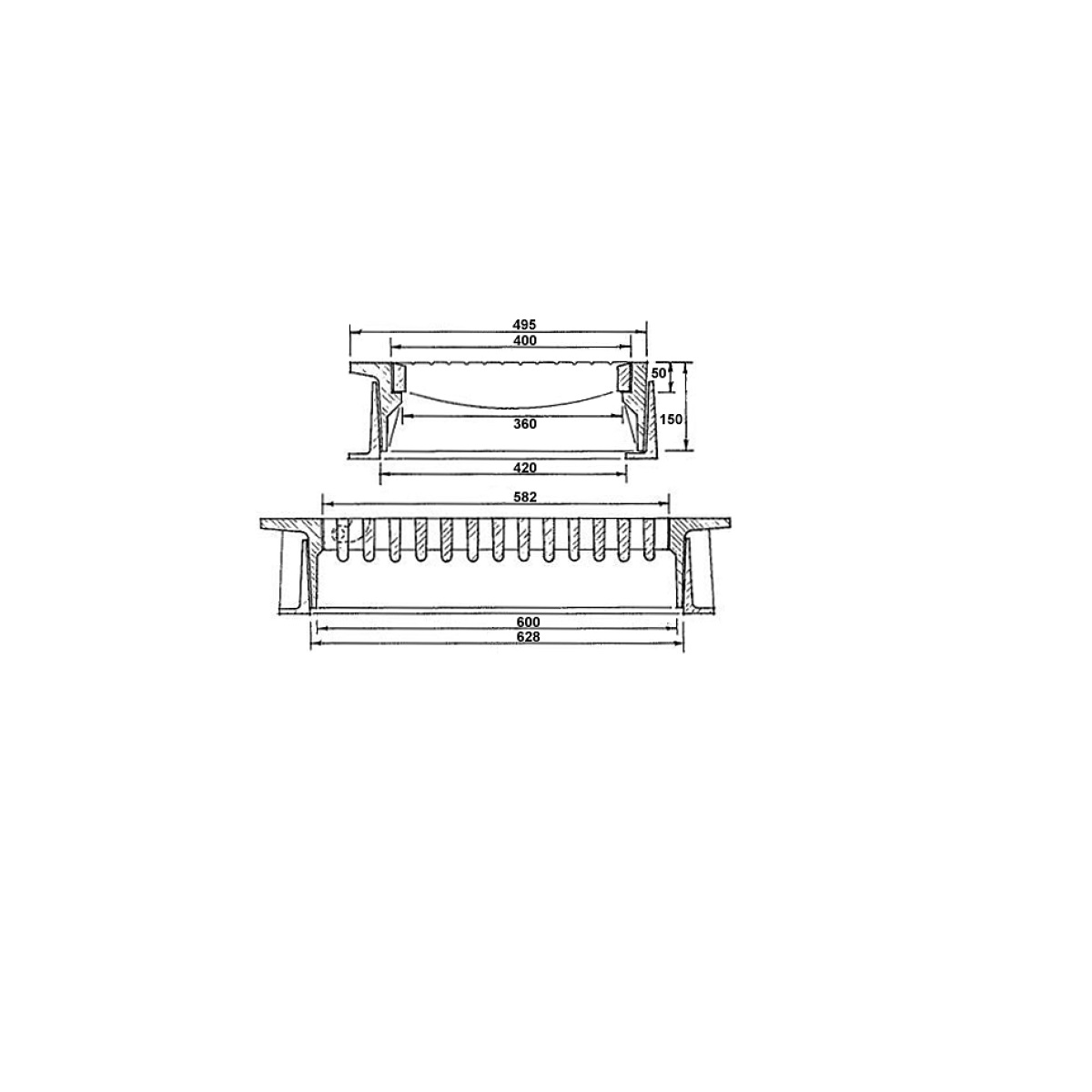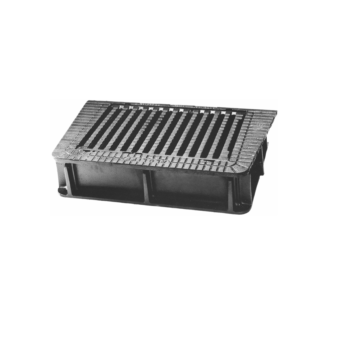 Betäckning med galler för dagvattenbrunn med dagöppning 500, gångjärn, sandlås, gråjärn