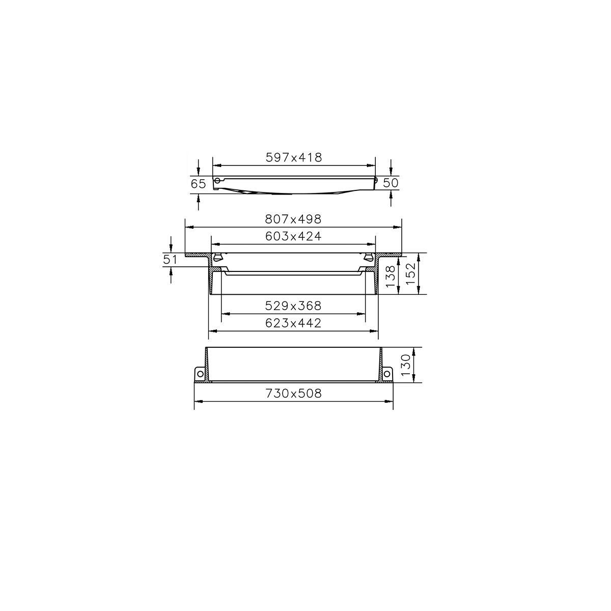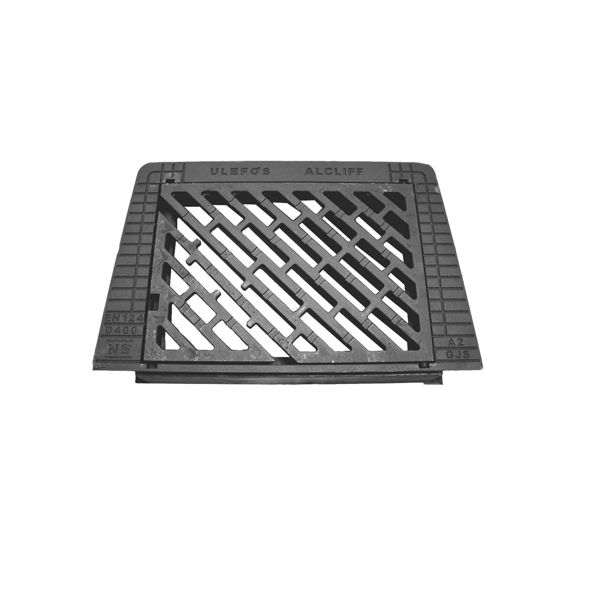 Betäckning med galler för dagvattenbrunn med dagöppning 500, gångjärn, segjärn