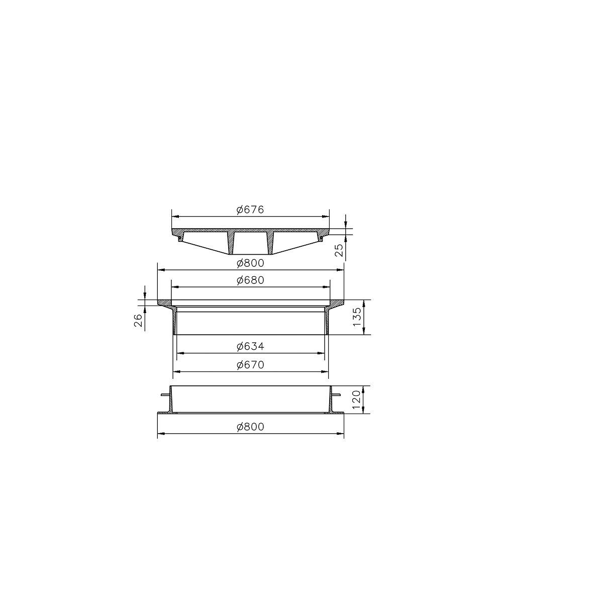 Rund betäckning med lock för brunn med dagöppning 640/600, gastät, segjärn