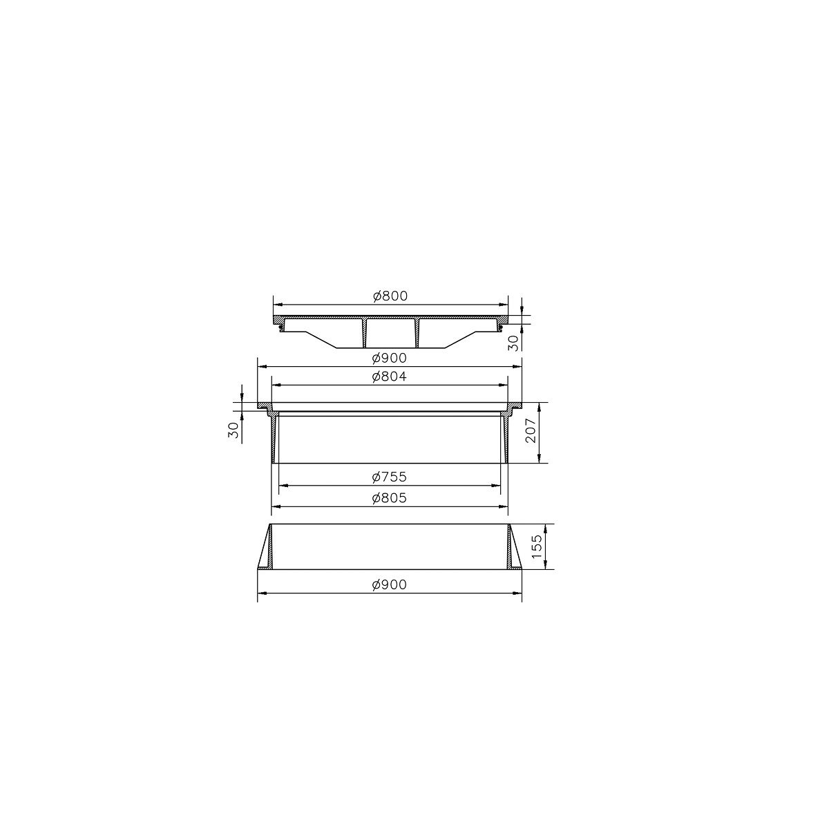 Rund betäckning med lock för brunn med dagöppning 800, segjärn
