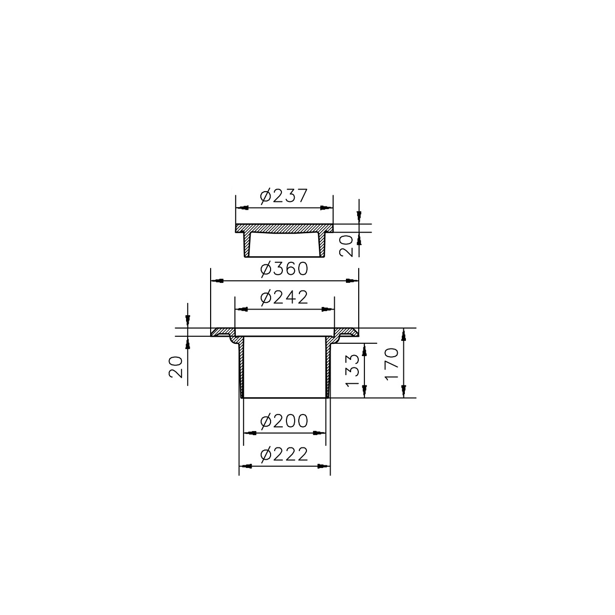 Rund betäckning med lock för brunn med dagöppning 225, kantringssäkert, segjärn