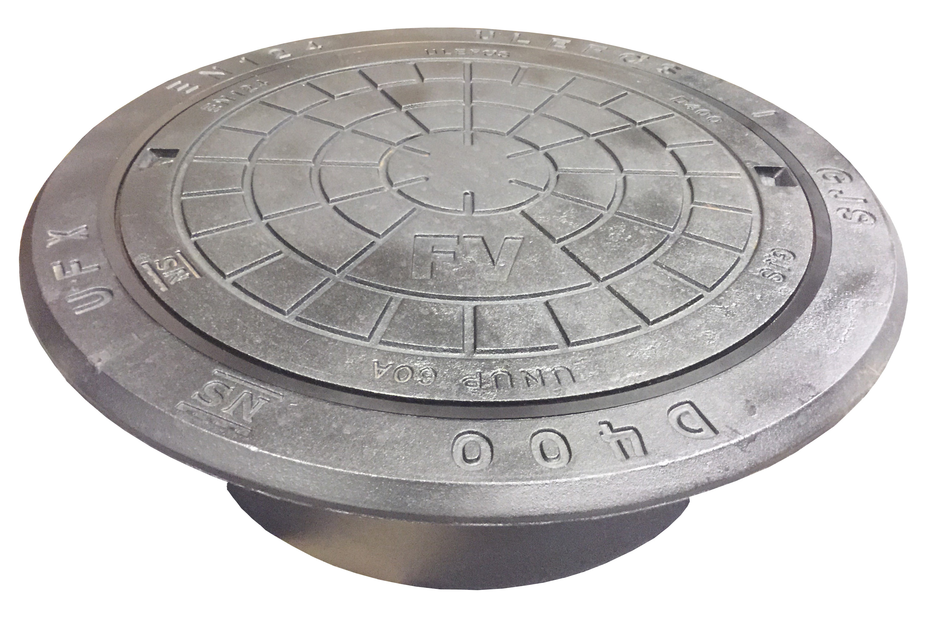 Rund betäckning med lock för brunn med dagöppning 600, UP-packning NBR, täta nyckelhål, segjärn, märkt FV