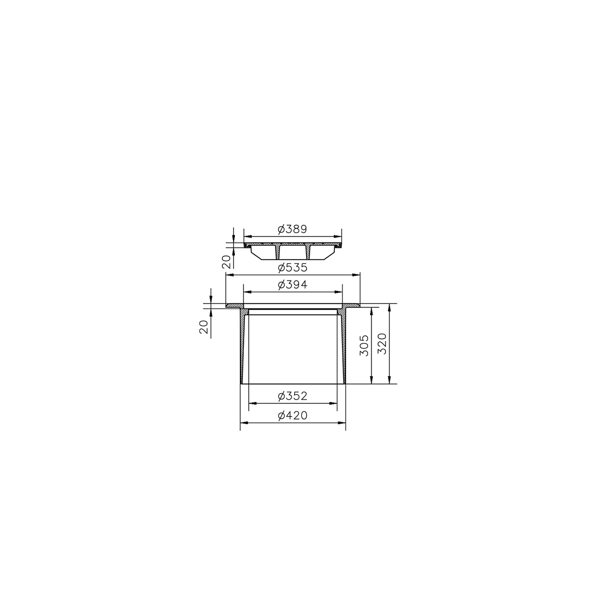 Rund betäckning med lock för korrugerad brandposttrumma di425, självlåsande, PUR-packning, märkt BP, segjärn