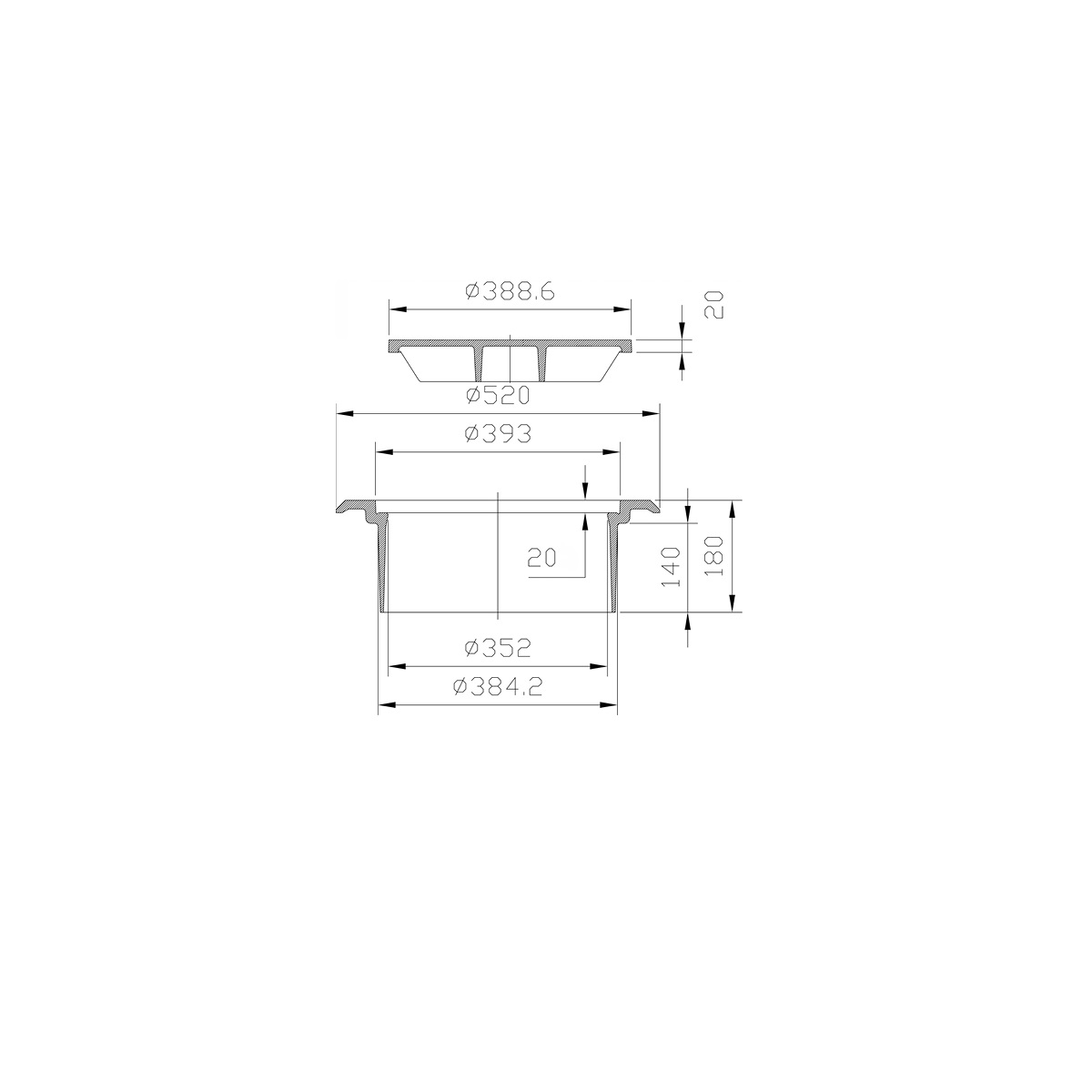 Rund betäckning med lock för tillsynsbrunn med dagöppning 400, självlåsande