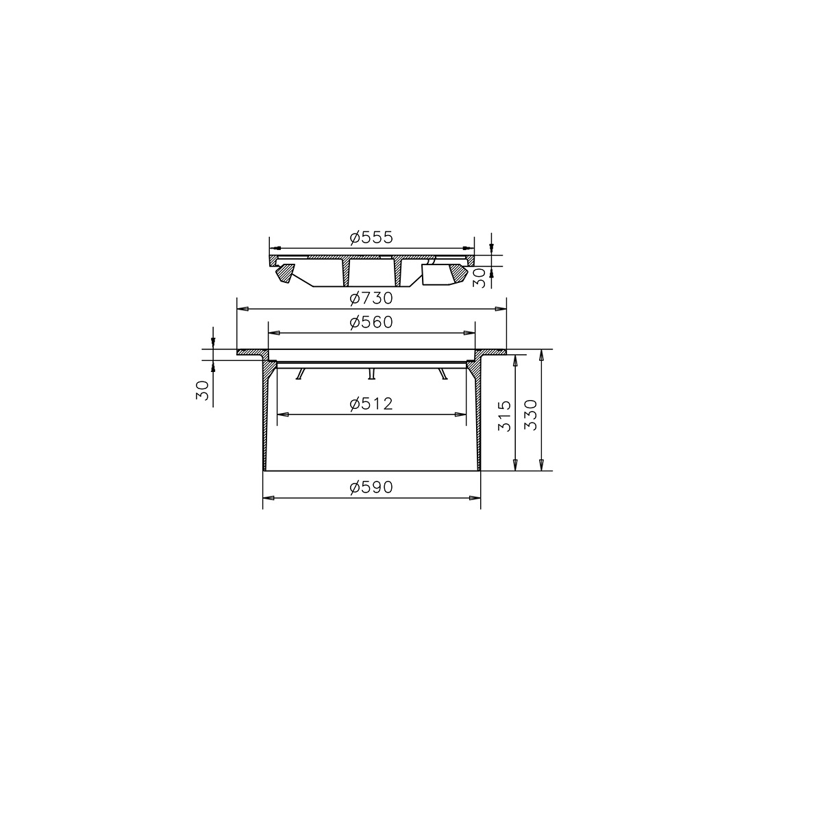 Rund betäckning med galler för dagvattenbrunn med dagöppning 600, självlåsande, segjärn