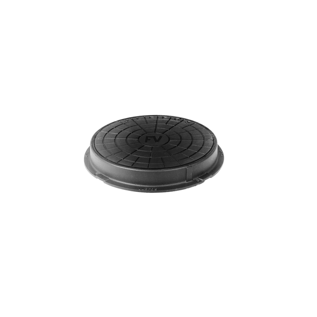 Rund betäckning med lock för brunn med dagöppning 640/600, UP-packning NBR, märkt FV, segjärn