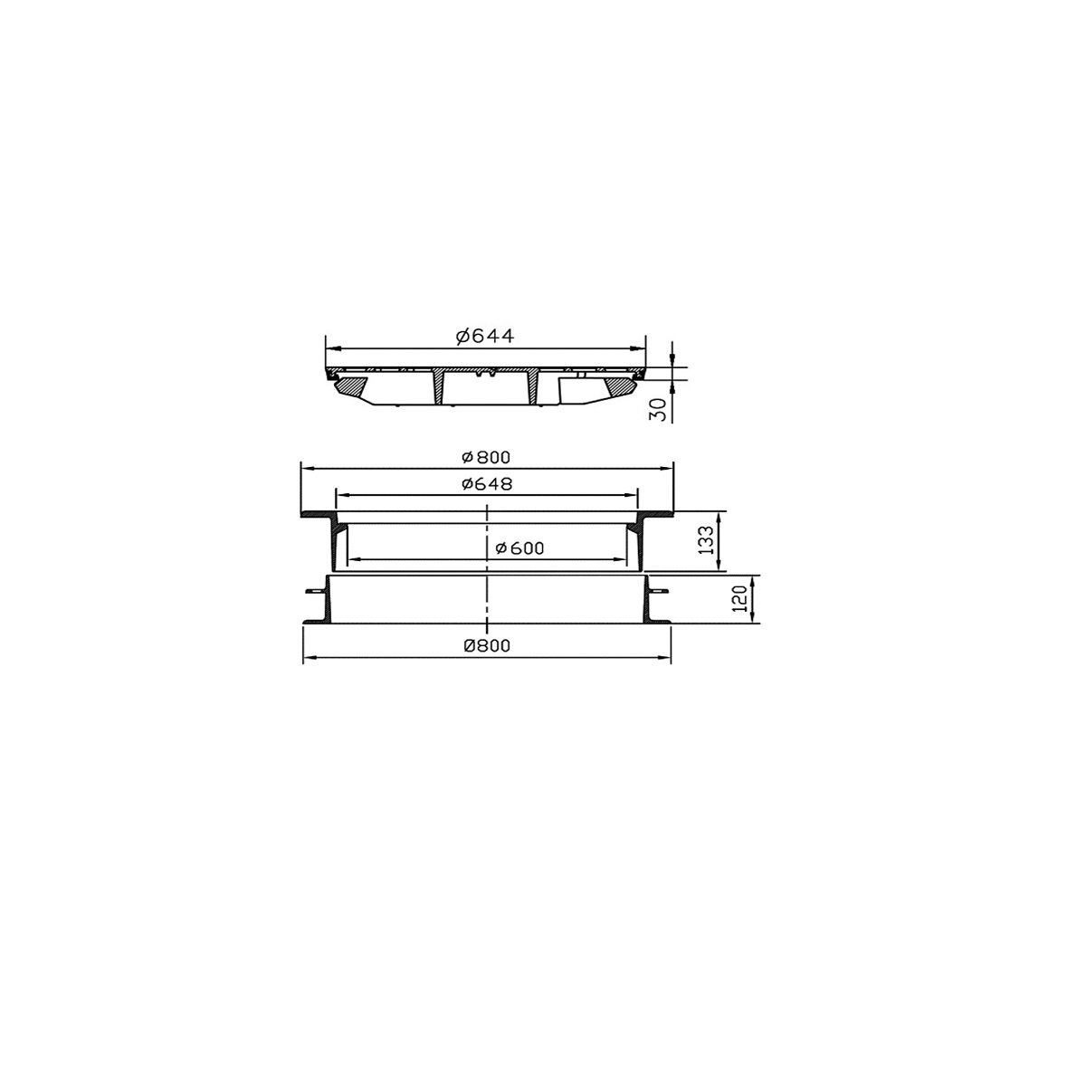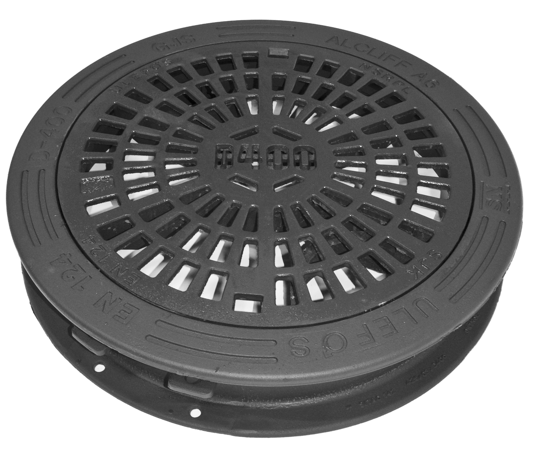 Rund betäckning med galler för brunn med dagöppning 640/600,packning, självlåsande, segjärn