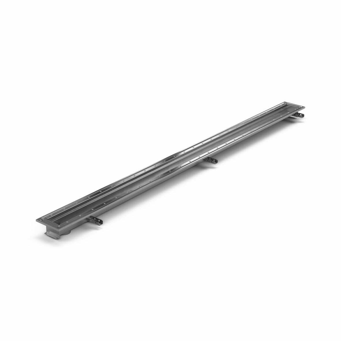 Purusränna 100 är en golvränna tillverkad i syrafast rostfritt stål för installation i betongbjälklag. Golvrännan är 2000x100 mm med ett gavelutlopp och är avsedd för plastmatta som ytskikt. Golvrännan behöver kompletteras med sil/galler beroende på miljö samt brunnsunderdel i plast eller syrafast rostfritt stål.