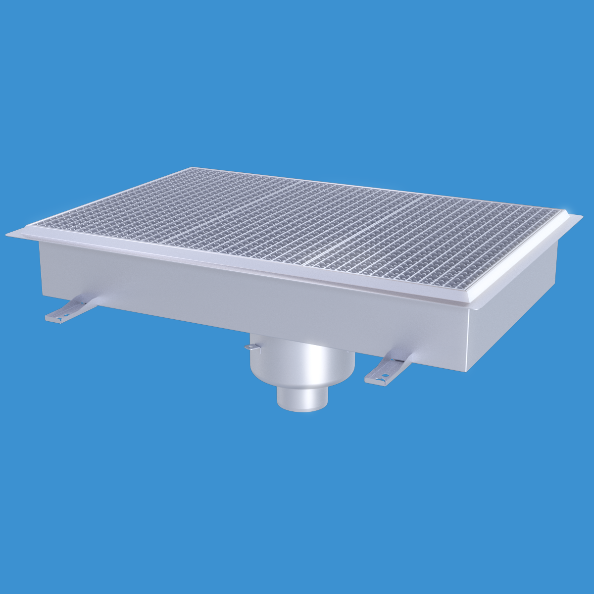 FURO 113 för bl.a. storkök och industri med lättare belastningar. Av syrafast rostfritt stål med bottenutlopp Ø110 mm. 200 mm djup fyrkantöverdel med galler L15 dim. 900x600 mm. För massagolv. Komplettera ev. med silkorg 7120796.