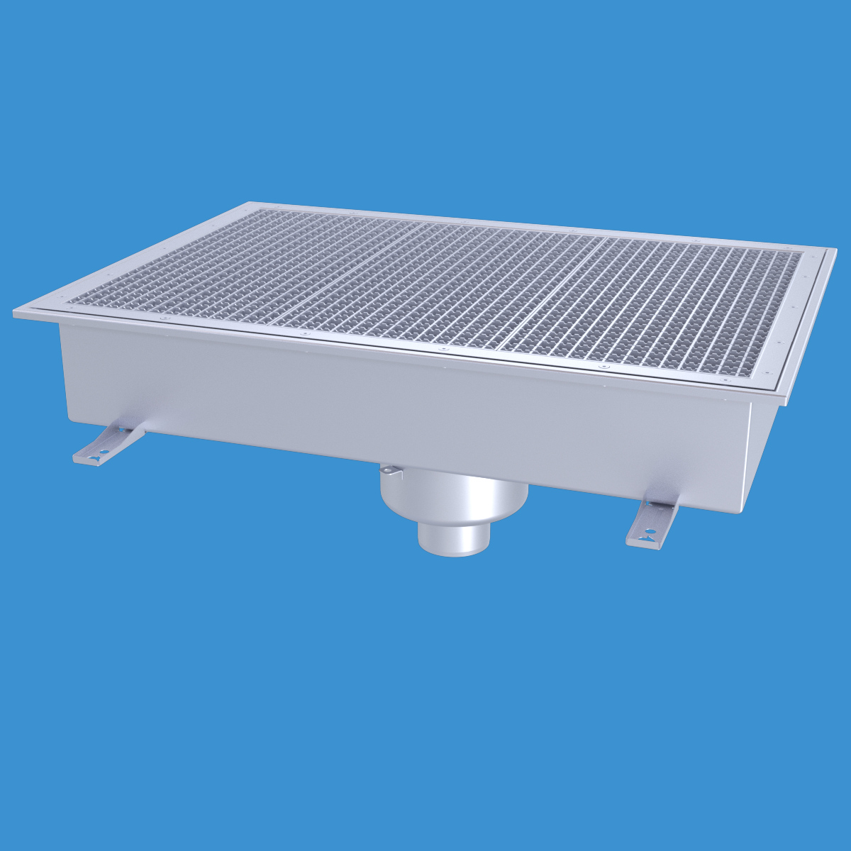 FURO 113 för bl.a. storkök och industri med lättare belastningar. Av syrafast rostfritt stål med bottenutlopp Ø110 mm. 200 mm djup fyrkantöverdel med galler L15 dim. 900x600 mm. För golv med plastmatta. Komplettera ev. med silkorg 7120796.