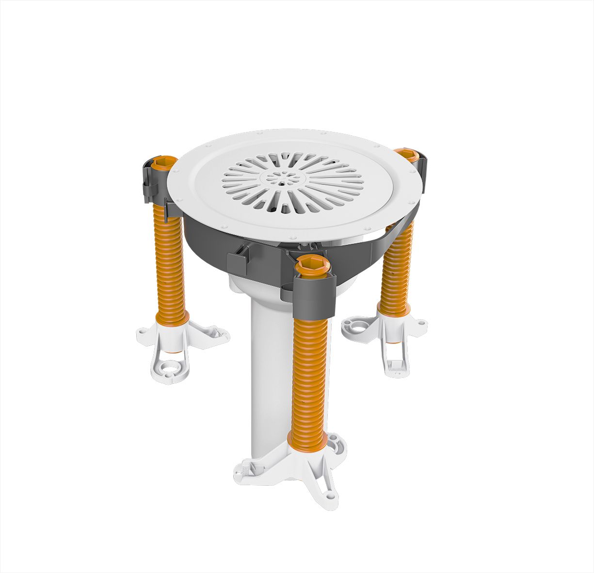 Golvbrunn BODIL RSK 7103770 inkl brunnsfixtur ROBUST RSK 7129556. Används vid ingjutning i betongbjälklag. Vid extra tjockt bjälklag finns förhöjningssats RSK 7129805. Vid ROT-arbeten där betongen blivit ojämn kan man med fördel använda Rotfot RSK 7129830.
