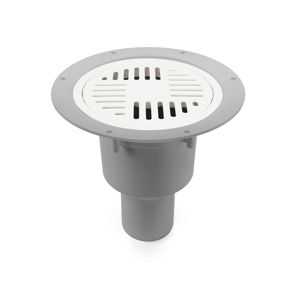Golvbrunnen levereras med ett mattpaket som innehåller: vit klämring, 5 st tillhörande specialskruvar utan spets i syrafast rostfritt stål, O-ring och vit golvbrunnssil i plast med halkskydd.