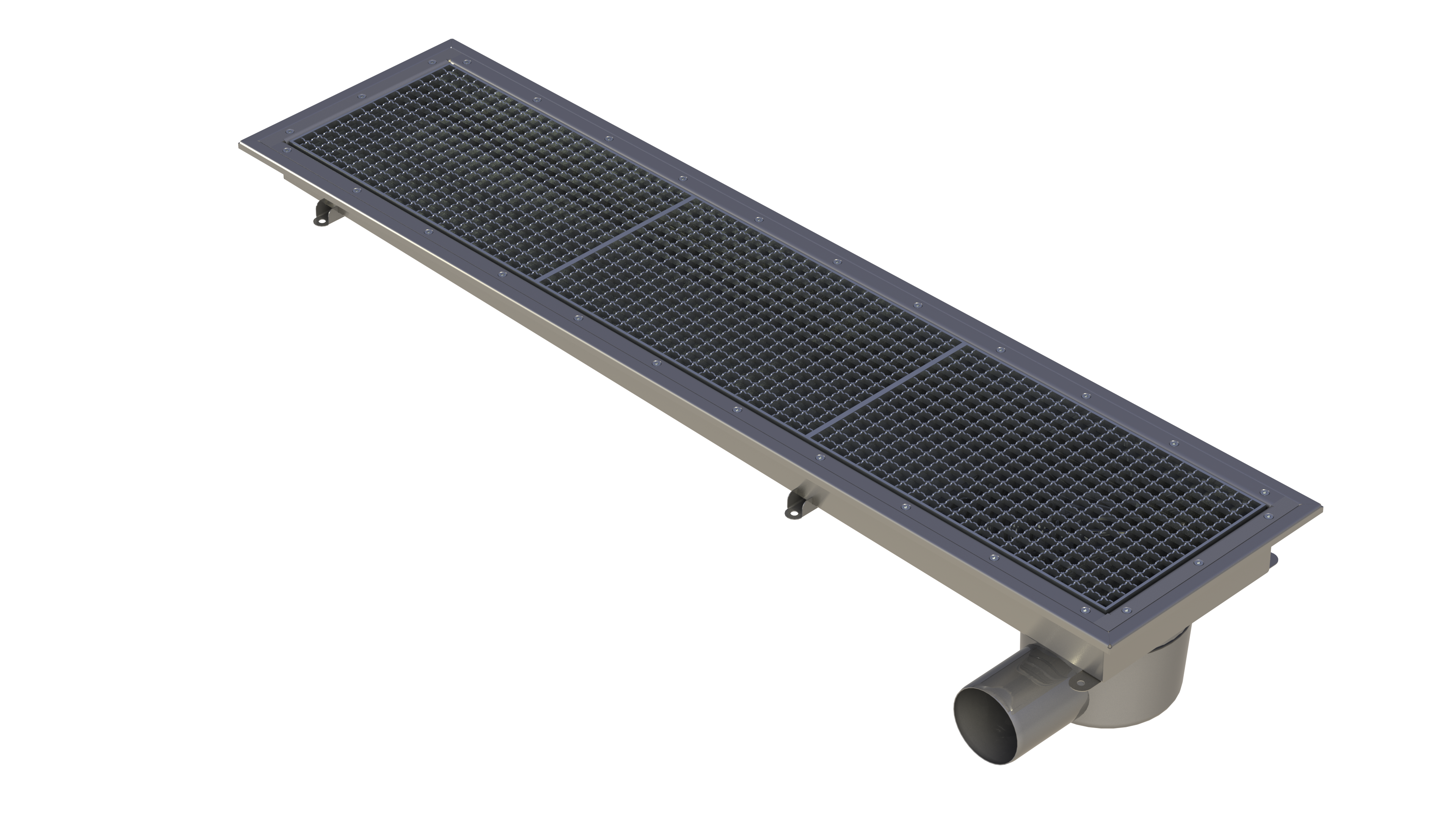 Golvränna för golv med plastmatta i t.ex. storkök eller industri. Utförs i EN 1.4301 alternativt Syrafast EN 1.4404 mot förfrågan. Urtagbart vattenlås & silkorg ingår.