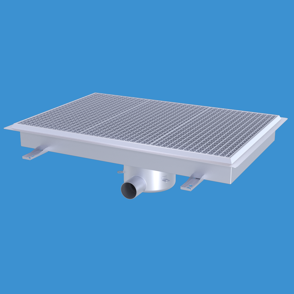 FURO 113 för bl.a. storkök och industri med lättare belastningar. Av syrafast rostfritt stål med sidoutlopp Ø75 mm. 150 mm djup fyrkantöverdel med galler L15 dim. 900x600 mm. För massagolv. Komplettera ev. med silkorg 7120796.